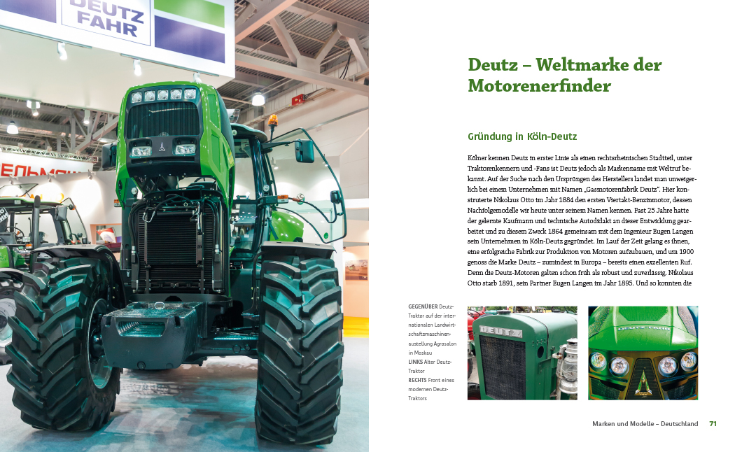 | Schlagworte | Aebi • Agria • Autonome Traktoren • Bildband • Bulldog • Claas • Dampftraktor • Deutz • Dieselross • Fendt • Großtraktoren • Holder • Hürlimann • John Deere • Keronsintraktor • Kleintraktoren • Kompakttraktor • Landwirtschaft • Lifestyle, Hobbys und Freizeit • Lindner • Mercedes Benz • Nutzfahrzeug • Nutzfahrzeuge • Radschlepper • Reform • Schlepper • Steyr • Träger • Traktor • Traktoren • Trecker • Unimog • Werner • Zugmaschine |