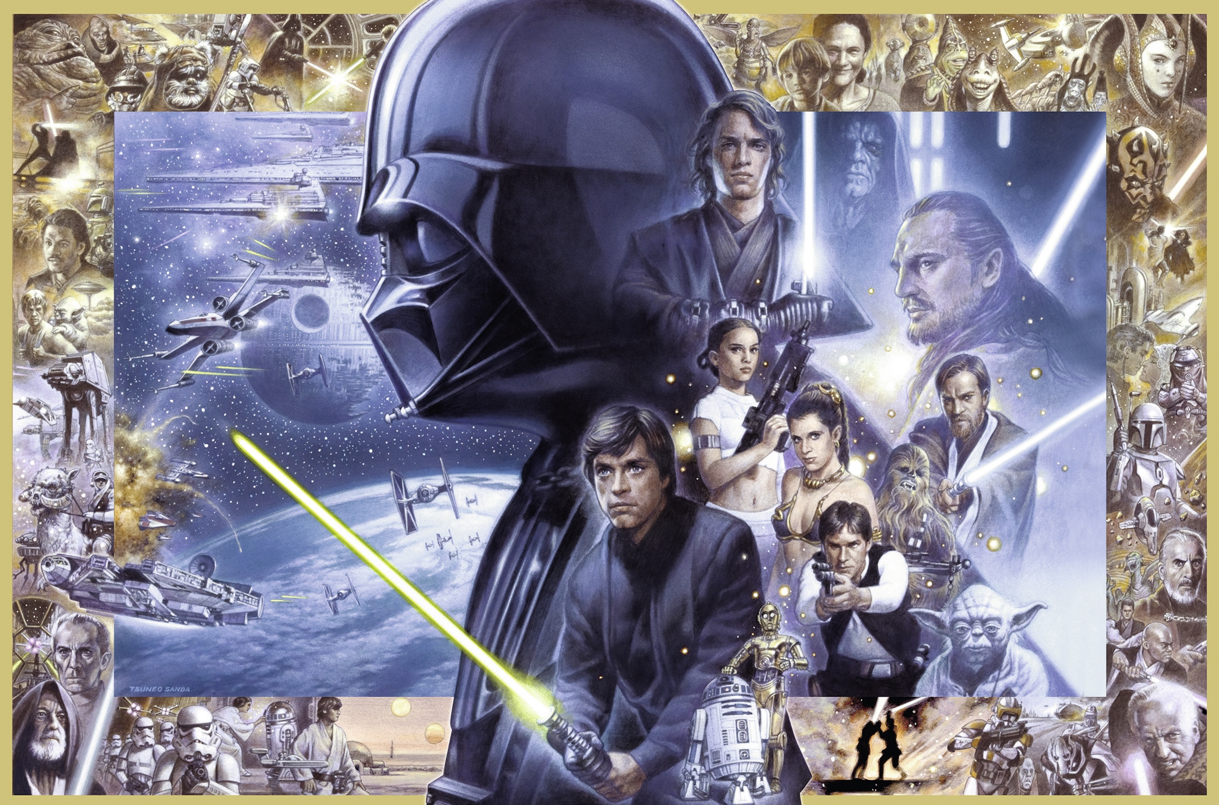 Das bislang größte Star Wars Puzzle der Welt mit 5000 Teilen misst ca. 1,5 x 1 Meter und ist ein Must-Have für alle Star Wars Fans. Darth Vader, Yoda, Han Solo, Obi-Wan Kenobi - das Motiv vereint die größten Filmiconen beider Seiten der Macht, von Star Wars Episode I bis Episode VI. Die beeindruckende Illustration von Tsuneo Sanda wurde exklusiv und in enger Abstimmung mit Lukasfilm/Disney entwickelt und wird ausschließlich für dieses Puzzle eingesetzt. Ob Puzzler oder nicht - dieses Kleinod darf in keiner Sammlung fehlen. Spieleanleitung in deutsch, niederländisch, spanisch, französisch, italienisch, englisch. Anzahl Puzzleteile: 5000. Größe Puzzle: 153 x 101 cm.