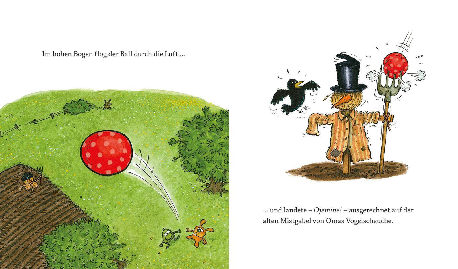Der Hase Nulli und der Frosch Priesemut geraten beim Fußballspielen in Streit, weil Priesemut aus Versehen den Ball kaputt gemacht hat. Doch zum Glück weiß Oma Bär weiß Rat und holt ihren alten Lederfußball hervor ...
