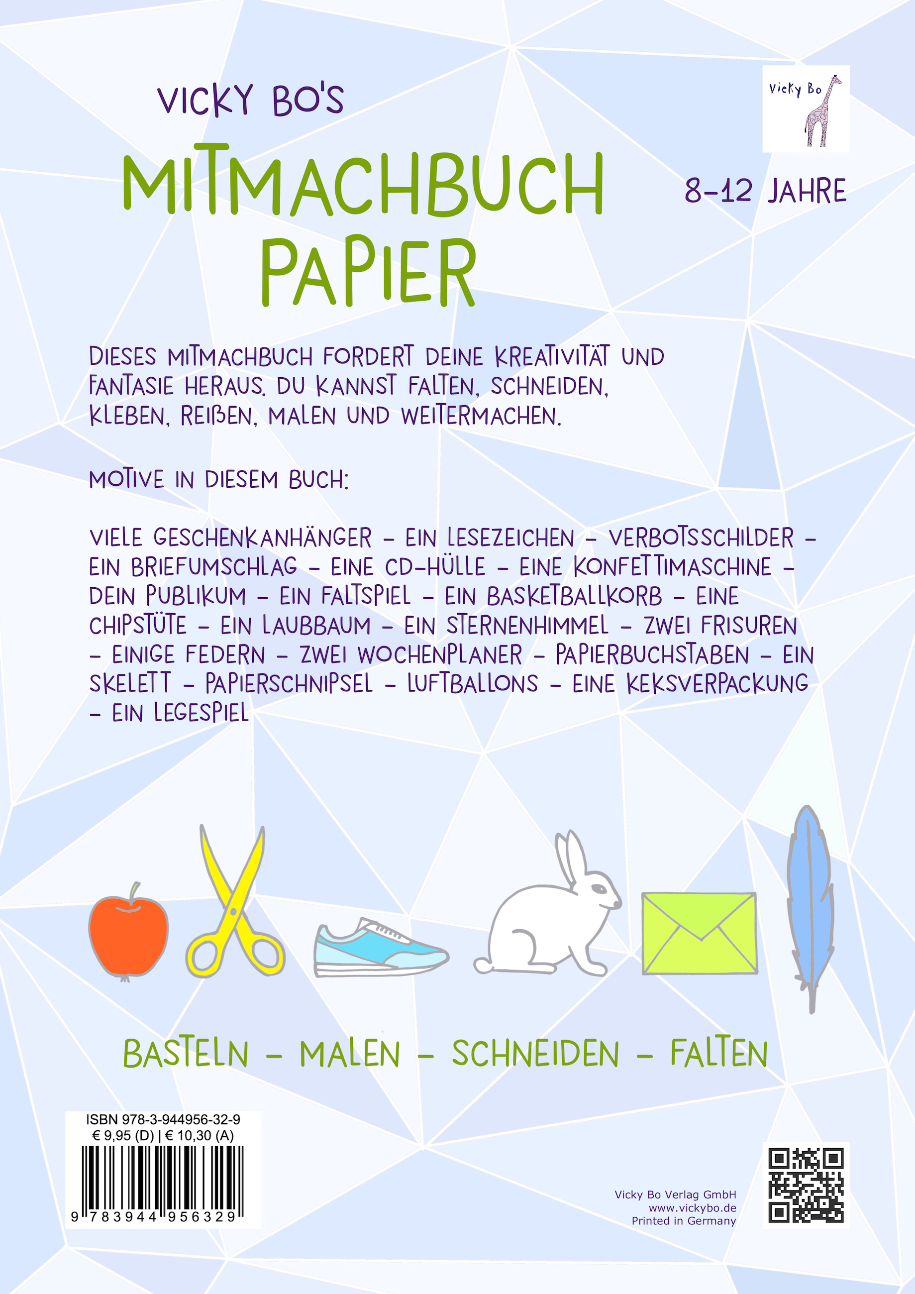 Vicky Bo's Mitmachbuch Papier fordert deine Kreativität und deine Fantasie heraus. Du kannst dir aus Papier deine eigenen Verbotsschilder basteln, ein Lesezeichen falten, Geschenkanhänger ausschneiden, einen Wochenplaner kleben, Chipstüten und Keksverpackungen designen. Mama freut sich mit Sicherheit über deine super nützlichen Geschenkideen. Leg los!