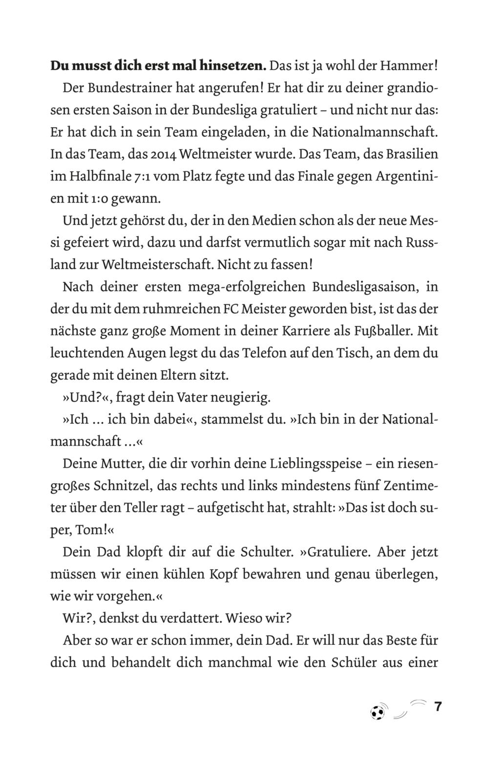 lt;p>Tom kann es nicht fassen: Nach seiner ersten Bundesliga-Saison hat ihn der Bundestrainer in den erweiterten Kader der Nationalmannschaft für die WM in Russland berufen! Jetzt liegt es an Tom - und dem Leser -, wie die Geschichte weitergeht. Wird Tom es schaffen sich einen Platz in der Mannschaft zu erkämpfen und kann er Deutschland vielleicht sogar zum Titel führen?