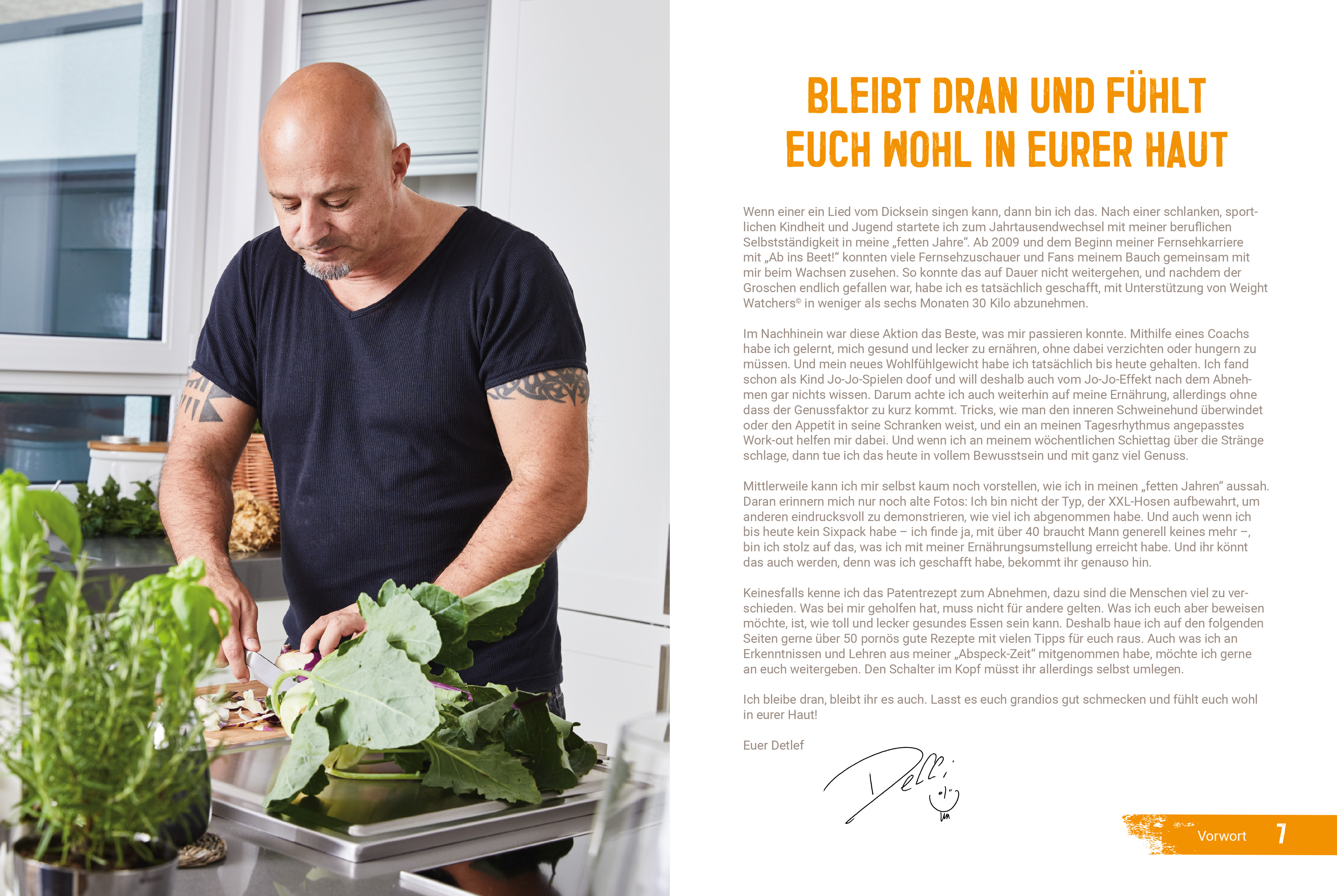 TV-Doku-Star Detlef Steves zeigt, wie's geht. In seinem Buch verrät er sein Erfolgsprinzip, mit dem er sich "knackig" gekocht hat, ohne einen anschließenden Jo-Jo-Effekt zu erleben. Das soll jedoch nicht kompletten Verzicht bedeuten, der Weg zum Idealgewicht soll schließlich Spaß machen. Mit seinen Express-Rezepten, Motivationstricks und Bewegungstipps versichert er, dass jeder es schaffen kann, ohne großen Aufwand seine Ernährung umzustellen, in Krisen neue Motivation zu schöpfen und vom Couchpotatoe zum Sportfreak zu werden. Ob eine Currysuppe mit Garnelen, Hähnchen-Saltimbocca mit Süßkartoffelstampf oder Quarkpuffer mit Möhren-Mandel-Salat - Detlef Steves kocht jeden schlank!