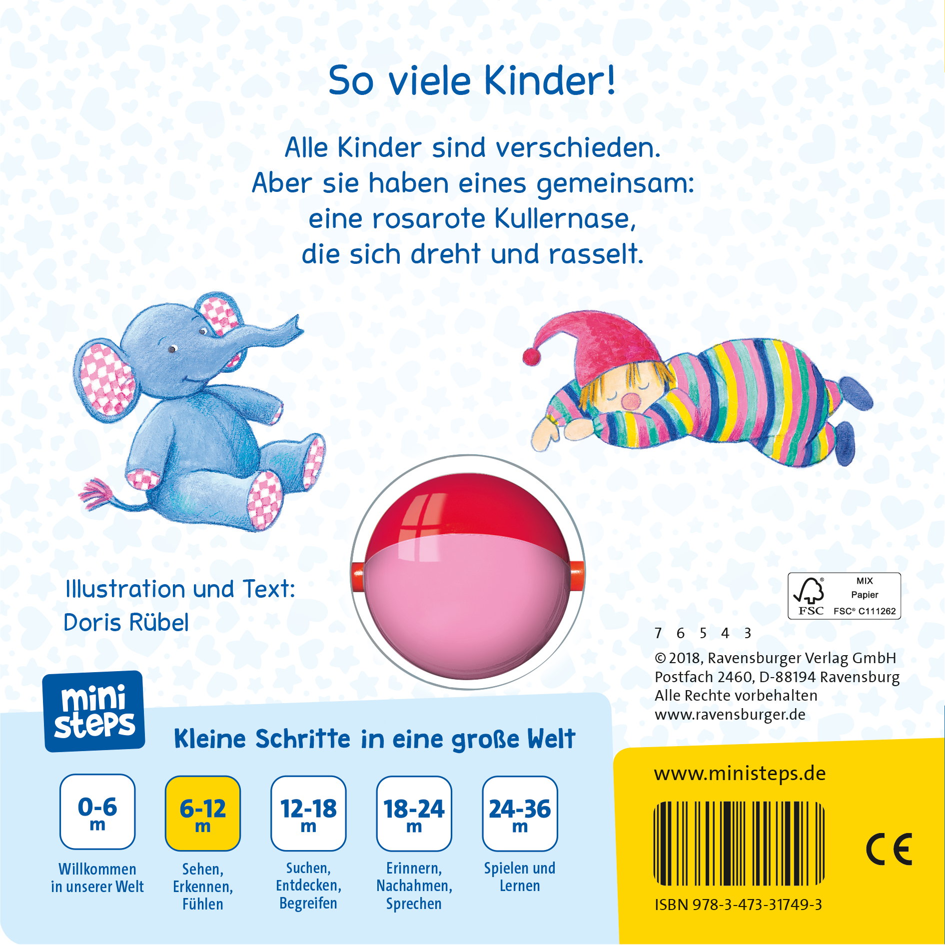 Die lustige rosarote Kullernase begeistert schon die Kleinsten. Durch Drehen und Anstupsen können kleine Entdecker die Kugel zum Rasseln bringen. In welchem Kindergesicht sie wohl auf der nächsten Seite auftaucht? Beim Umblättern entdecken die Kleinen nicht nur die Kullernase wieder, sondern auch ganz viel aus ihrer Alltagswelt. Kurze Reime greifen dabei die verschiedenen Motive auf.
