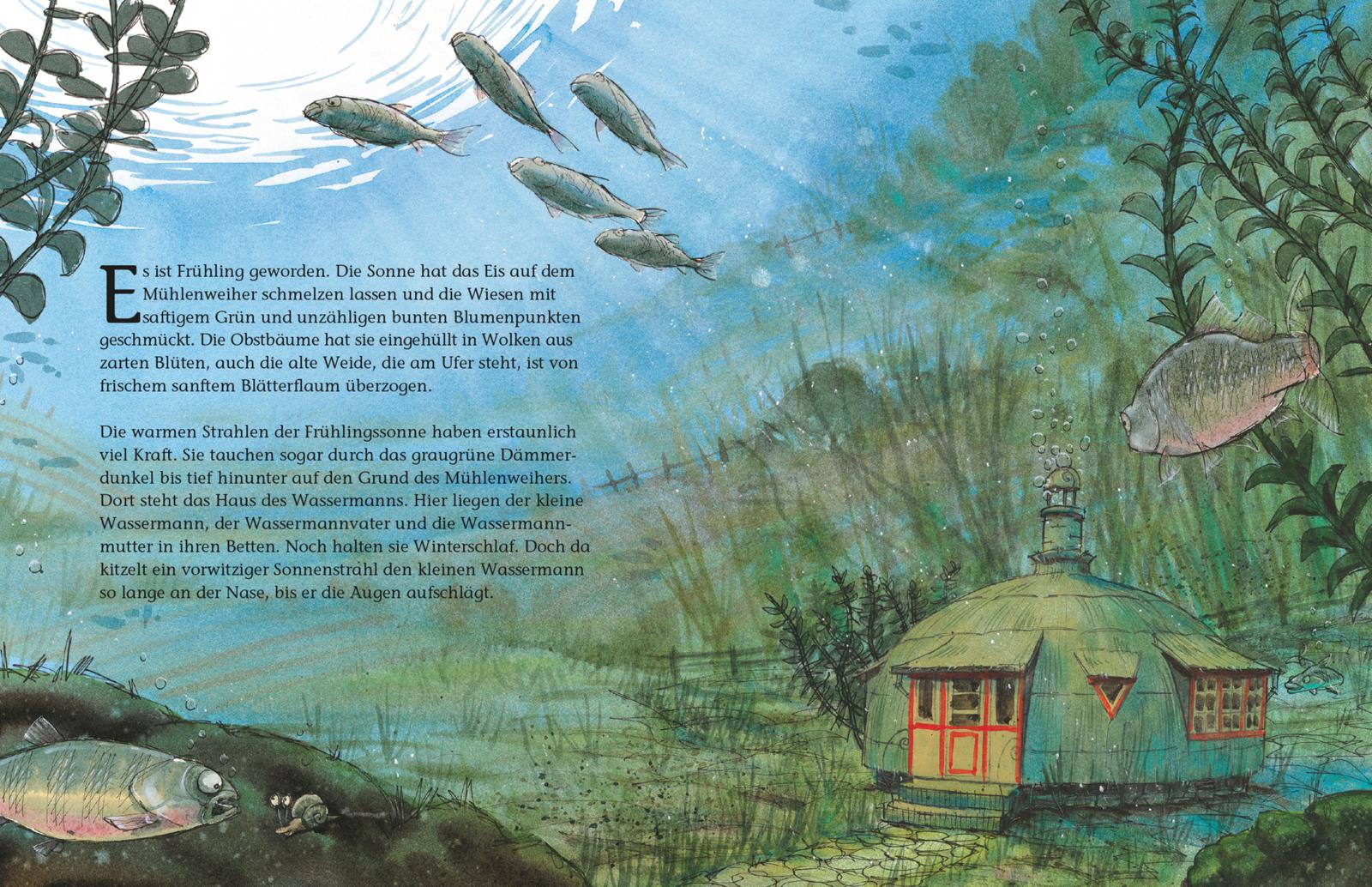 Es ist Frühling! Die ersten wärmenden Sonnenstrahlen erreichen den Grund des Mühlenweihers. Auch der kleine Wassermann erwacht aus dem Winterschlaf. Neugierig und voller Tatendrang macht er sich daran, seine Umgebung zu erkunden. Ob seine Freunde noch alle da sind?