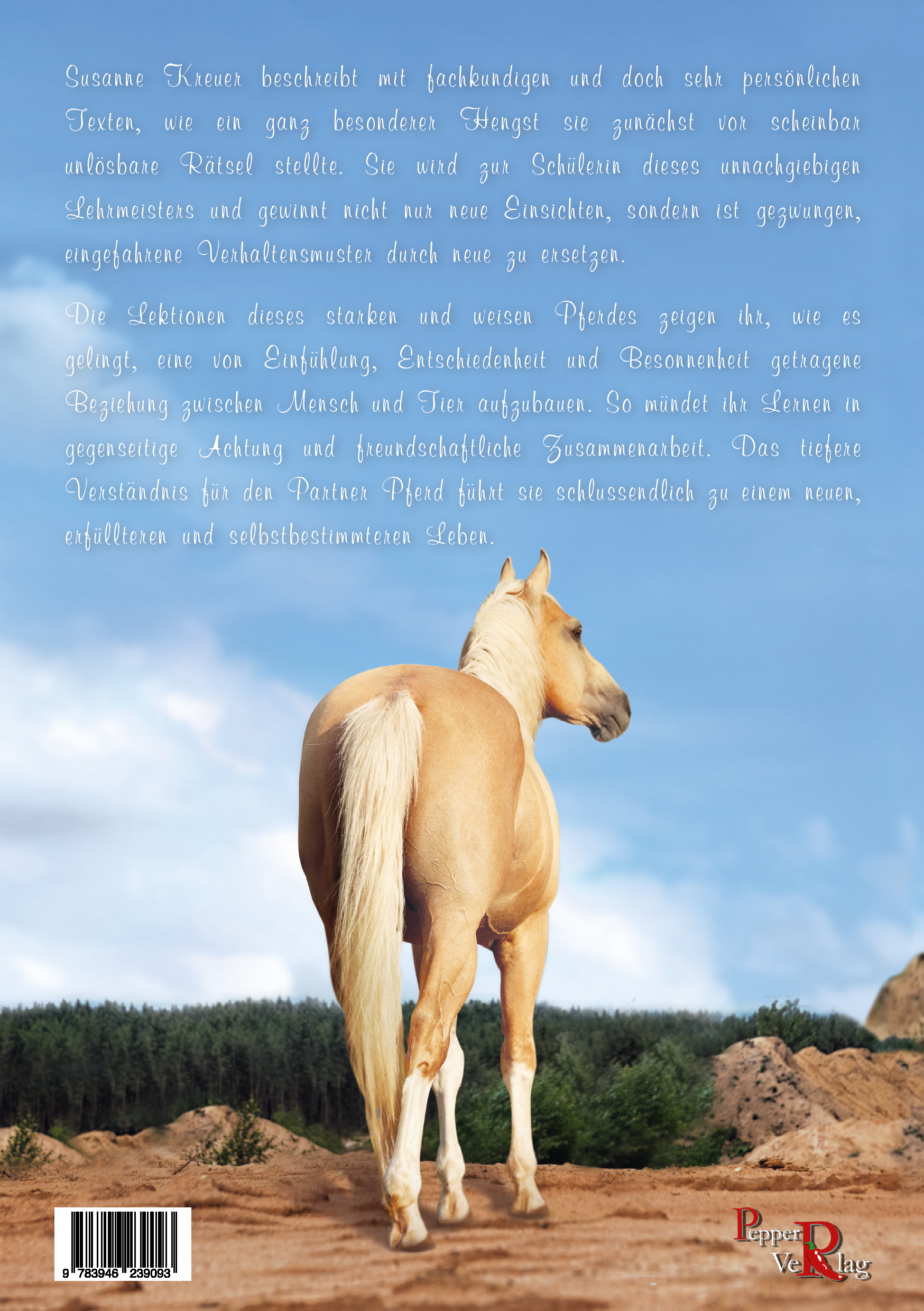 Susanne Kreuer beschreibt mit fachkundigen und doch sehr persönlichen Texten, wie ein ganz besonderer Hengst sie zunächst vor scheinbar unlösbare Rätsel stellte. Sie wird zur Schülerin dieses unnachgiebigen Lehrmeisters und gewinnt nicht nur neue Einsichten, sondern ist gezwungen, eingefahrene Verhaltensmuster durch neue zu ersetzen. Die Lektionen dieses starken und weisen Pferdes zeigen ihr, wie es gelingt, eine von Einfühlung, Entschiedenheit und Besonnenheit getragene Beziehung zwischen Mensch und Tier aufzubauen. So mündet ihr Lernen in gegenseitige Achtung und freundschaftliche Zusammenarbeit. Das tiefere Verständnis für den Partner Pferd führt sie schlussendlich zu einem neuen, erfüllteren und selbstbestimmteren Leben.