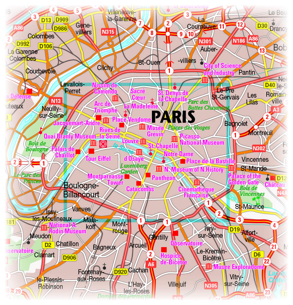 Also, worauf warten Sie noch? Den Eiffelturm, den Louvre und Mona Lisas Lächeln entdeckt man mit dem touristischen Stadtplan in Paris. Mit Umgebungskarte, Straßenverzeichnis, Innenstadtvergrößerung und Infos zu den Sehenswürdigkeiten ist alles schnell gefunden!