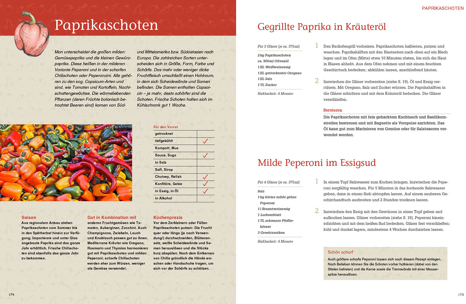 Vorräte einmachen - so gelingt'sNichts schmeckt besser als fruchtige Himbeermarmelade, würzige eingelegte Tomaten oder saftiges Sauerkraut aus eigener Herstellung ohne künstliche Zusätze, abgefüllt in hübsche Gläser und Flaschen. Selbst eingemachte Köstlichkeiten aus Obst und Gemüse lassen selbst im Winter den Sommer wieder aufleben. Einmachen - gewusst wieLesen Sie, was Sie bei Einmach-Techniken wie Einlegen, Einwecken oder Trocknen und Heißeinfüllen beachten müssen. Mit wenig Aufwand können Sie frisches, erntereifes Obst und Gemüse haltbarmachen, für den eigenen Bedarf Vorräte herstellen oder Selbstgemachtes verschenken. Sie erfahren alles über natürliche Konservierungsmittel wie Salz und Zucker, Essig, Öl und Alkohol.Einmachen von Obst und GemüseIn diesem Einmach-ABC finden Sie von A wie Apfel bis Z wie Zwiebel-45 Obst- und Gemüsearten: Äpfel und Quitten, Steinobst, alle heimischen Beeren und Wildfrüchte, Gurken und Tomaten, Rote Bete und Hülsenfrüchte sowie Kräuter, Nüsse und Pilze -mehr als 270 Rezepte, die garantiert gelingen. Mit Angaben zu Haltbarkeit und Aufbewahrung-Marmeladen und Liköre, Chutneys, Pickles und würzige Saucen,-Eingelegtes in Essig oder Öl, milchsauer oder würzig-scharf. Einmachen und was dazu gehörtZusätzlich zu den tollen Rezepten zum Einwecken und Einmachen erhalten Sie nützliche Tipps für -Aromaöle, Gewürzsalzmischungen und Senfkreationen, die in keiner Küche fehlen sollten und stets willkommene Geschenke sind-Tipps für die Herstellung von Säften aus Obst und Gemüsen, etwa Möhren und Rote Beten-Ideen für hübsche Geschenkverpackungen der eingemachten Delikatessen -Angaben zu Verwendung und Serviervorschläge Ganz gleich, was die Jahreszeit Ihnen bietet, Sie finden tolle Rezepte für Klassiker genauso wie neue Ideen zum Einkochen. Ganz gleich, wo Sie das Buch aufschlagen, es macht Lust auf lecker eingeweckte Köstlichkeiten.