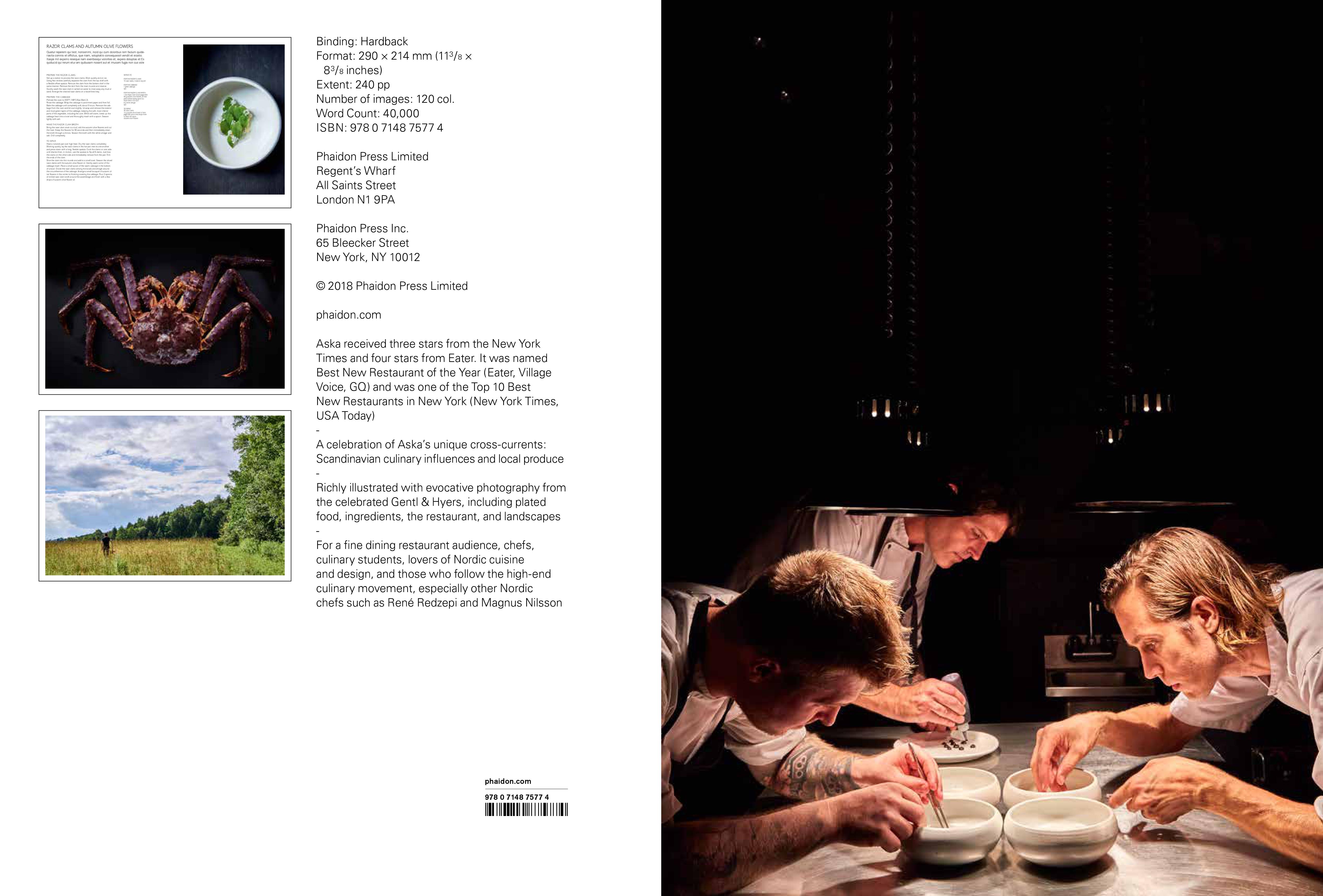 Berselius shares his culinary journey of Scandinavian flavors and techniques through the courses of his exquisite seasonally-driven tasting menu, which features ingredients from an urban farm and local producers across the Northeast United States. With a stark and poetic Nordic aesthetic, Aska includes 85 recipes, evocative personal writing, and stunning photography.