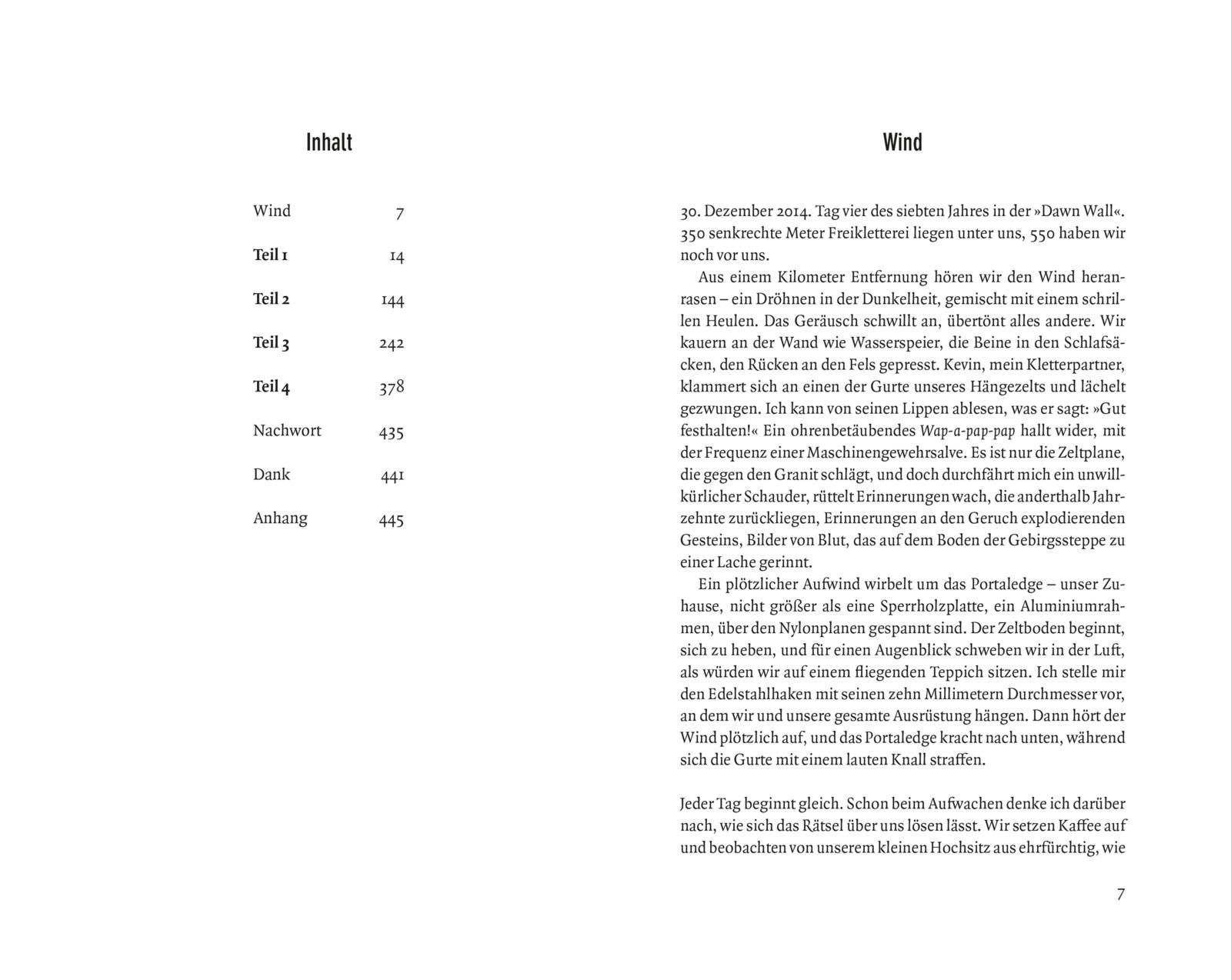 Mitreißend berichtet der 39-Jährige im vorliegenden New-York-Times-Bestseller von der Faszination des Freikletterns. Er schildert die traumatische Geiselnahme, in die er im Jahr 2000 in Kirgisistan verwickelt wurde, und gewährt persönliche Einblicke: wie sein Vater ihn mit Fanatismus an den Extremsport heranführte, wie er den Verlust seines linken Zeigefingers verkraftete und wie die Geburt seines ersten Kindes sein Verständnis von Verantwortung und Risikobereitschaft verändert hat.