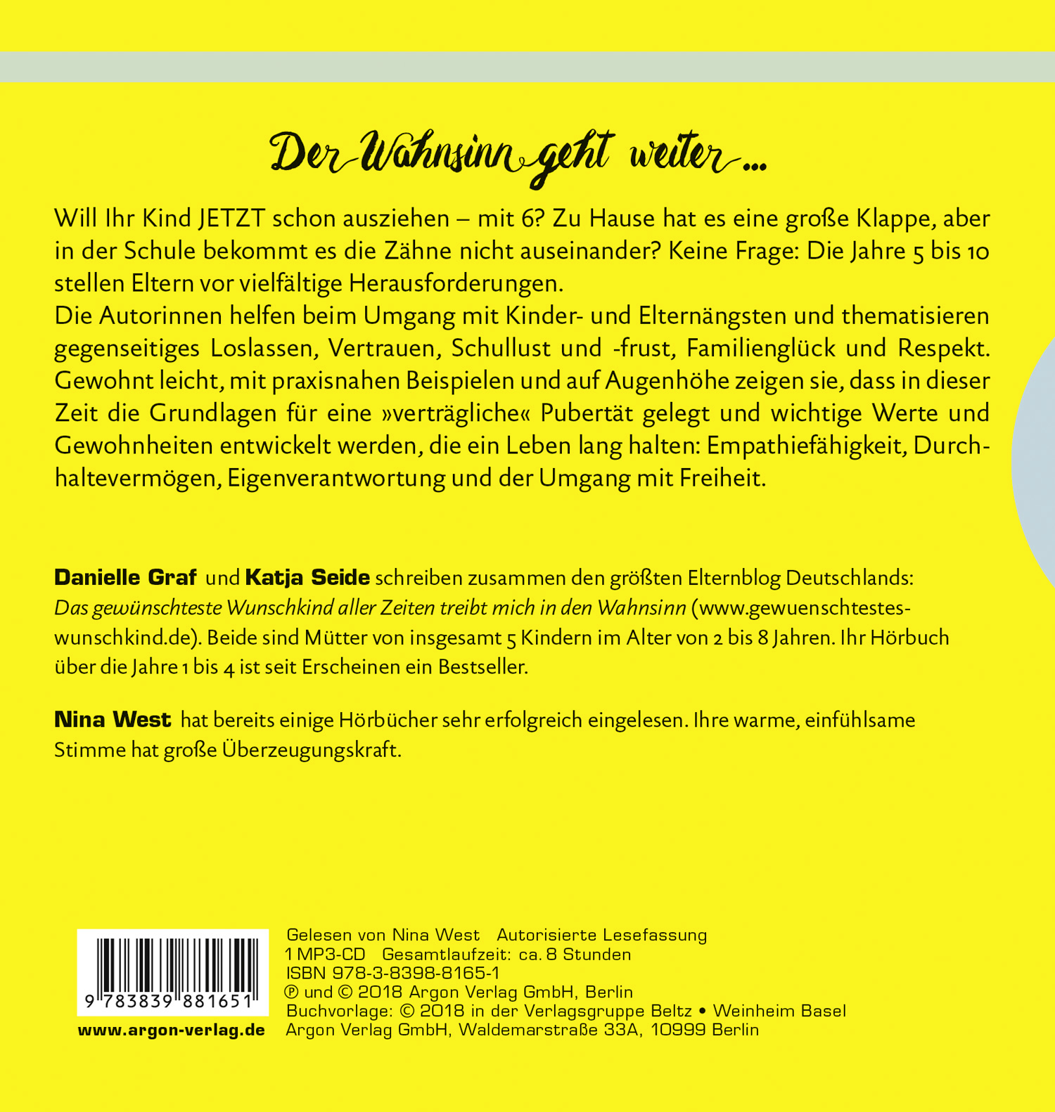 Graf, Danielle Danielle Graf schreibt zusammen mit Katja Seide den Blog "Das gewünschteste Wunschkind aller Zeiten treibt mich in den Wahnsinn", der viele Millionen Zugriffe verzeichnet. Sie ist Mutter von zwei Kindern und arbeitet als Rechtsökonomin in Berlin. Seide, Katja Katja Seide schreibt zusammen mit Danielle Graf den Blog "Das gewünschteste Wunschkind aller Zeiten treibt mich in den Wahnsinn", der viele Millionen Zugriffe verzeichnet. Sie ist Mutter von drei Kindern und arbeitet als Sonderpädagogin in Berlin. West, Nina Nina West ist Schauspielerin für Film und Fernsehen und hat als Sprecherin bereits zahlreiche Hörbücher mit großem Erfolg eingelesen. Ihre warme, einfühlsame Stimme hat eine besondere Überzeugungskraft.