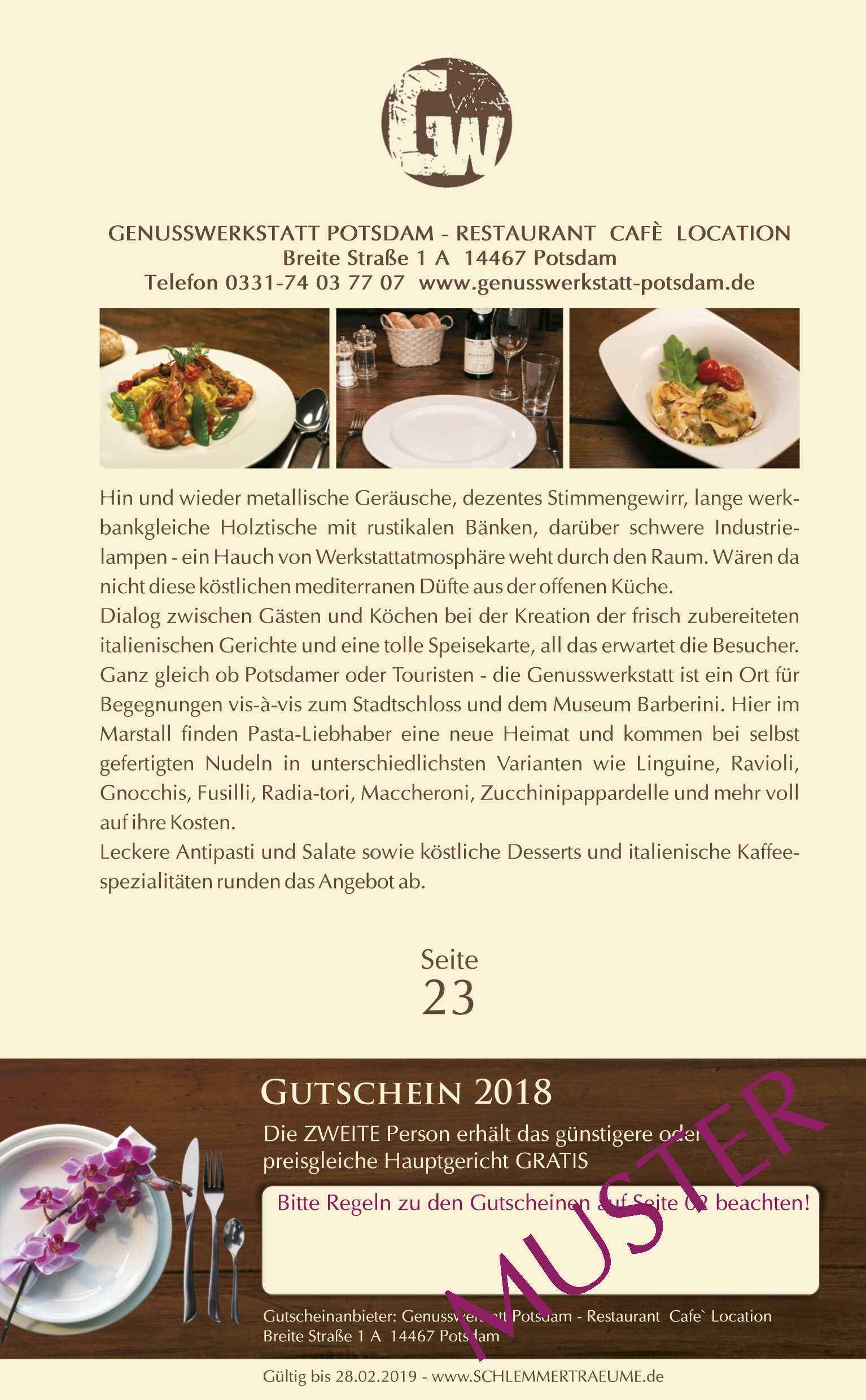 | Schlagworte | 2x Essen 1x Zahlen • Coupons • Gastroguide • Genießer • Geschenkidee • Gutscheinbuch • Gutscheinbuch für Genießer • Gutscheinbuch Potsdam • Gutscheine • Potsdam • Restaurantführer • Schlemmerträume • Weihnachtsgeschenk |