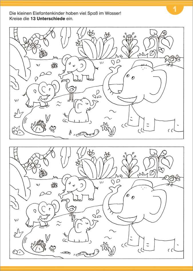 | Schlagworte | Delfin • Dschungel • Elefant • Faultier • Gemeinsamkeiten • Giraffe • Känguru • Koala • Löwe • Malen • Maulwurf • Meer • Nashorn • Rätsel • Schildkröte • Suchbilder • Tierkinder • Tiger • Unterschiede • Vergleichen • Wald • Zuordnen |