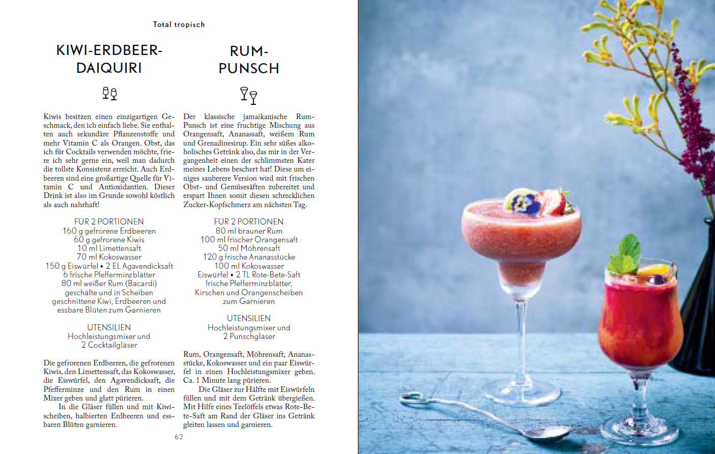 Cocktails sind nicht gut für dich? Ein glatter Irrtum – wenn du es damit nicht übertreibst! In diesem Buch sind 40 inspirierende Ideen für Cocktails und Drinks mit dem Plus für die Gesundheit und einem unverschämt leckeren Geschmack! zu finden. Grünes Gemüse, Superfoods und neue Aromen werden hier neben den herkömmlichen Zutaten wie Wodka, Gin und Sirup in den Cocktail-Shaker getan. Dieser Mix sorgt für weniger Hangover und mehr Energie. Auf den Zusatz von raffiniertem Zucker wird hierbei komplett verzichtet. Aufregende Kreationen wie der Pfirsich-Chia-Bellini, der Blaubeer-Acai-Smash, die Hanf-Piña-Colada oder der Grünkohl-Ananas-Daiquiri lassen deine Freunde staunen. Daher: Nieder mit den Smoothies, hier kommt die Cocktail-Revolution!
