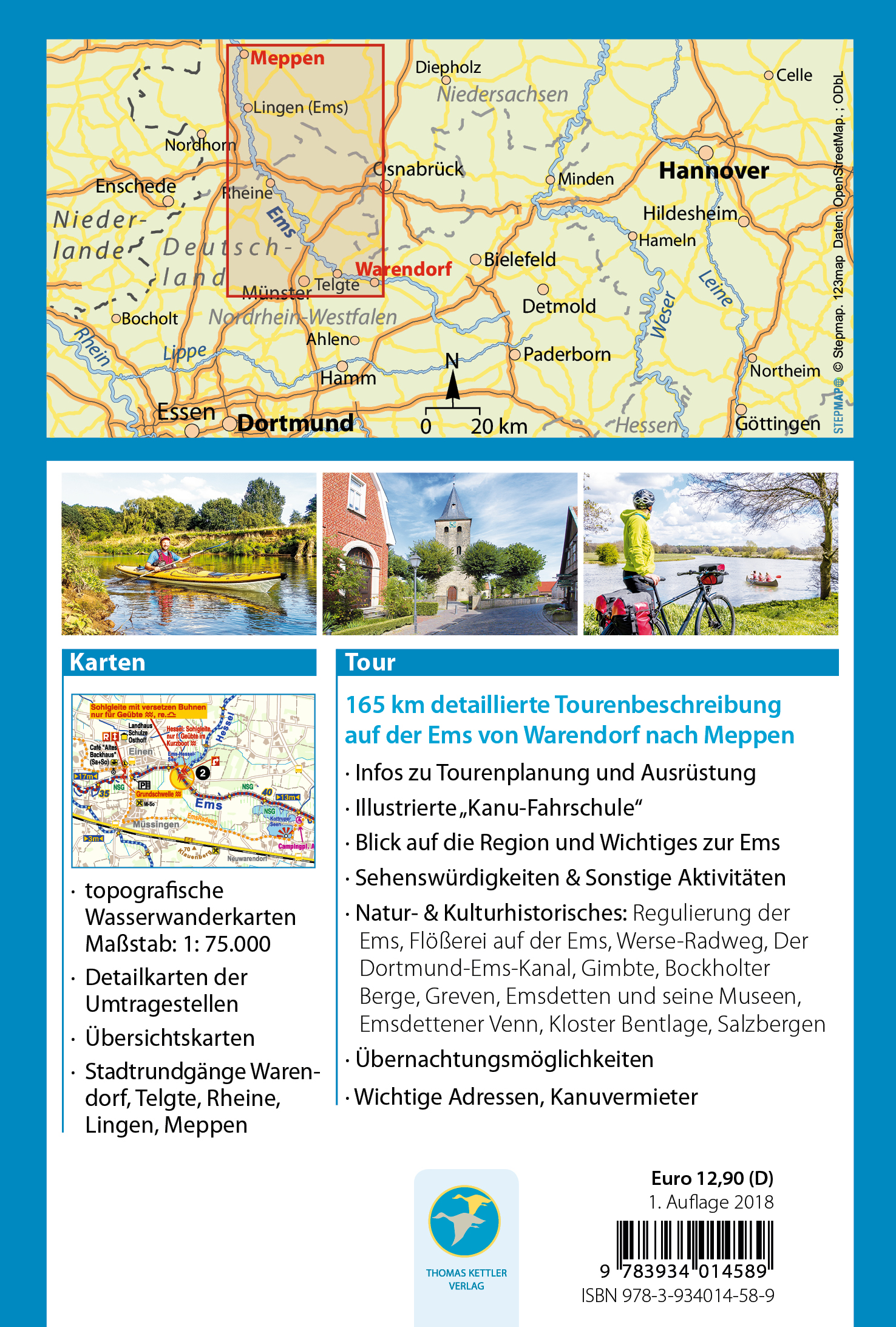 158 Kilometer Tourenbeschreibung auf der Ems von Warendorf (Regierungsbezirk Münster, Nordrhein-Westfalen) nach Meppen (Landkreis Emsland, Niedersachsen).