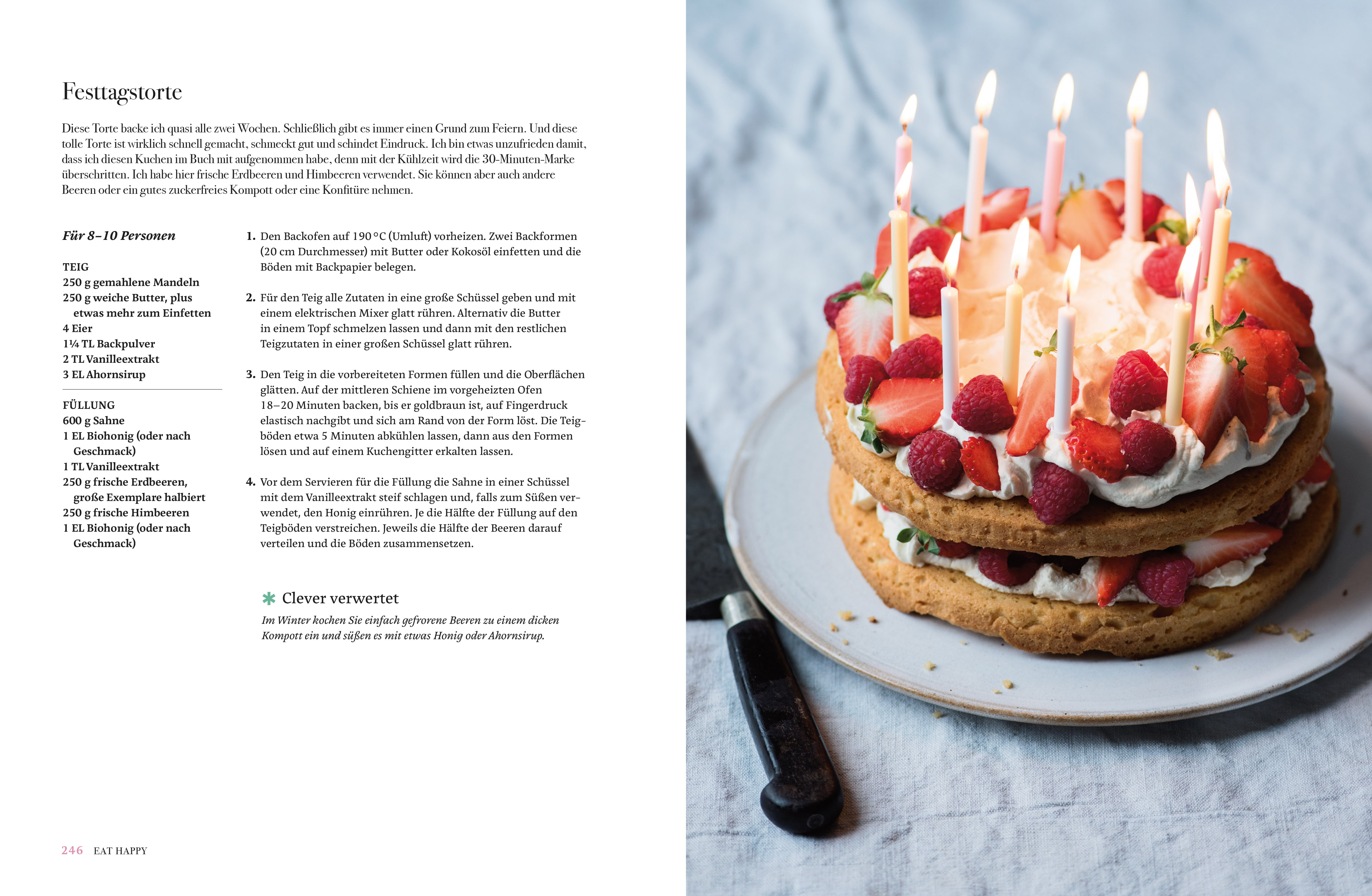 In 30 Minuten auf dem Tisch: Essen mit dem Rundum-Wohlfühleffekt! Melissa Hemsleys schnelle Rezepte basieren allesamt auf dem nährstoffreichen Hemsley-Food-Konzept: Gemüse satt, bei denen Genuss und sich gut fühlen an erster Stelle stehen. EAT HAPPY bietet 120 brandneue Rezepte für die schnelle, aber gesunde Alltagsküche und peppt sie mit dem kreativen Hemsley-Twist auf. Burger, Wraps und Pizza werden zu gesundem Fast Food, spannende Gerichte wie Zatar-Hühnchen, kalifornischer Grünkohlsalat oder Schoko-Kichererbsen-Schnitten sind dank Melissas Tipps fi x zubereitet. Viel Genuss, wenig Aufwand und ganz einfach: EAT HAPPY!