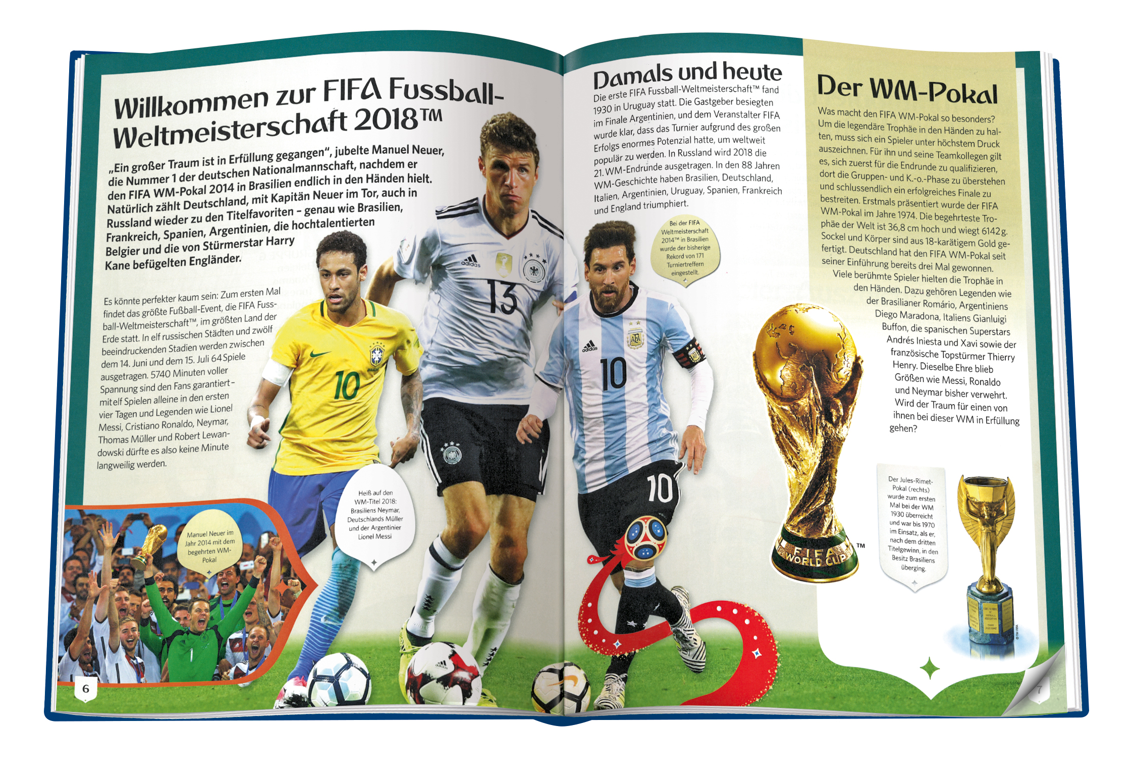 Endlich startet das sportliche Highlight des Jahres 2018 - die FIFA Fussball-Weltmeisterschaft(TM) in Russland -, und dieses Buch ist der optimale Begleiter für das Ereignis. Hier finden Fußballbegeisterte über 125 spektakuläre Bilder und jede Menge Informationen über die teilnehmenden Mannschaften und die Austragungsorte. Außerdem gibt es spannende Kurzprofile vieler Spitzenspieler und allerhand Wissenswertes über das Turnier. Am Ende können Jung und Alt bei weltmeisterstarken Rätseln beweisen, wie gut sie sich mit Fußball auskennen, und der offizielle Spielplan sorgt dafür, dass kein Spiel verpasst wird.Ein Volltreffer für alle großen und kleinen Fußballfans!