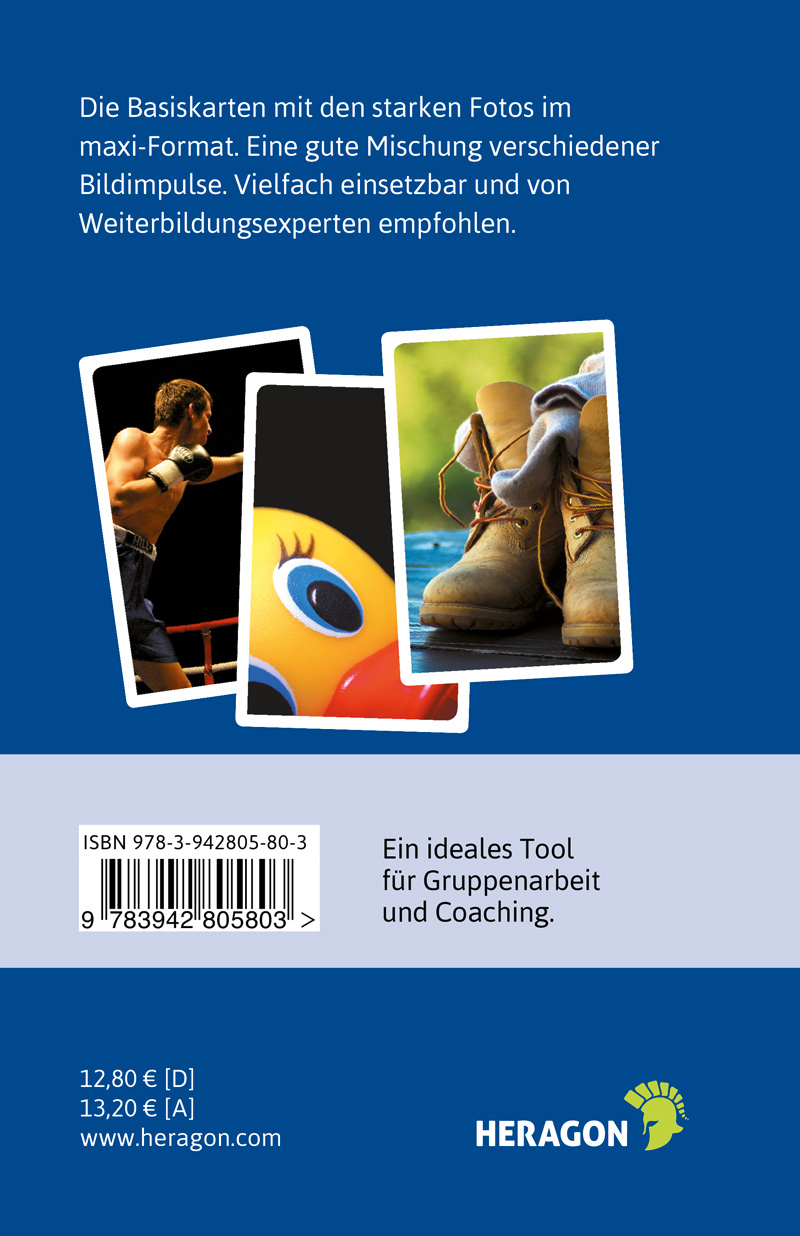 Die Basiskarten mit den starken Fotos im maxi-Format. Eine gute Mischung verschiedener Bildimpulse. Vielfach einsetzbar und von Weiterbildungsexperten empfohlen. Ein ideales Tool für Gruppenarbeit und Coaching.