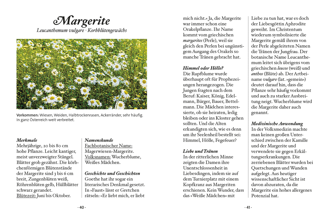 Im Frühjahr und Sommer leuchten Wiesen und Almen in den schönsten Farben. Doch welche Pflanzen sind es, die die Landschaft im Alpenraum jedes Jahr in ein Blütenmeer verwandeln und zahlreichen kleinen Lebewesen ein Zuhause bieten? Neben botanischen Merkmalen, Standorten und Verbreitung erklärt dieses kleine Buch, welche Geschichte die Wildblumen haben und wie wichtig die heimische Pflanzenvielfalt für Mensch und Tier ist.