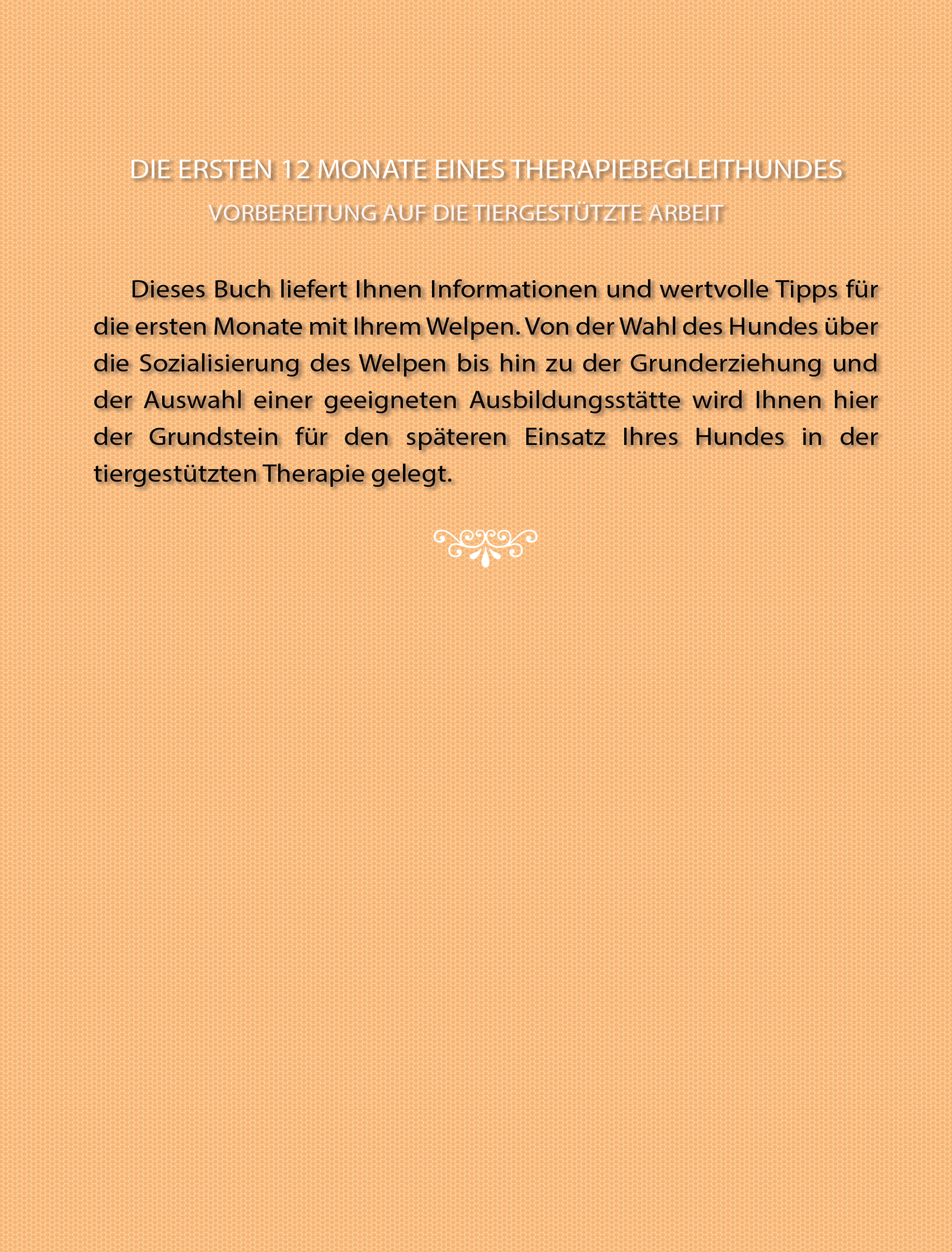 Dieses Buch liefert Ihnen Informationen und wertvolle Tipps für die ersten Monate mit Ihrem Welpen. Von der Wahl des Hundes über die Sozialisierung des Welpen bis hin zu der Grunderziehung und der Auswahl einer geeigneten Ausbildungsstätte wird Ihnen hier der Grundstein für den späteren Einsatz Ihres Hundes in der tiergestützten Therapie gelegt.