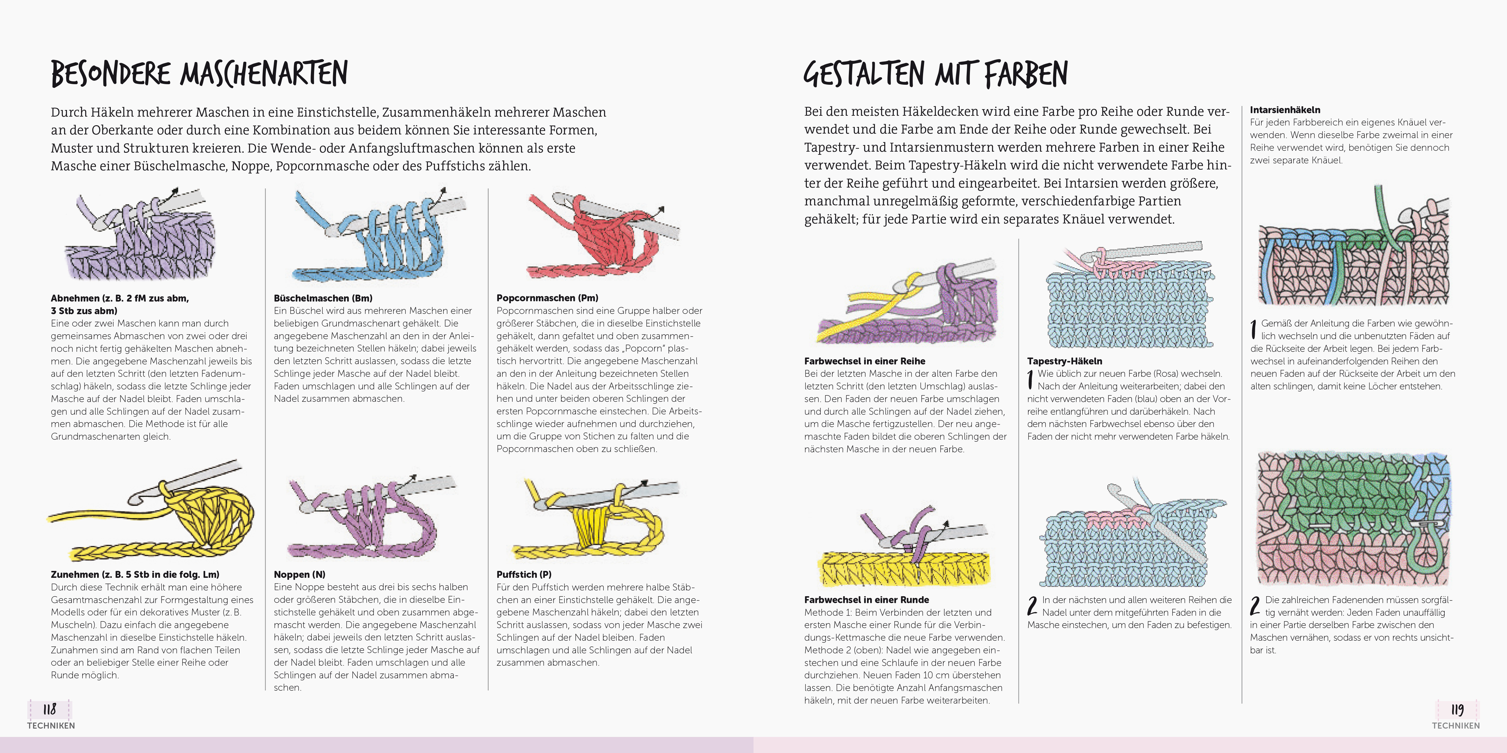 - Verschiedenste Häkelmuster und Techniken: von Mosaik häkeln über Blumenmuster häkeln, von Tapestry häkeln bis zum Waffelmuster häkeln