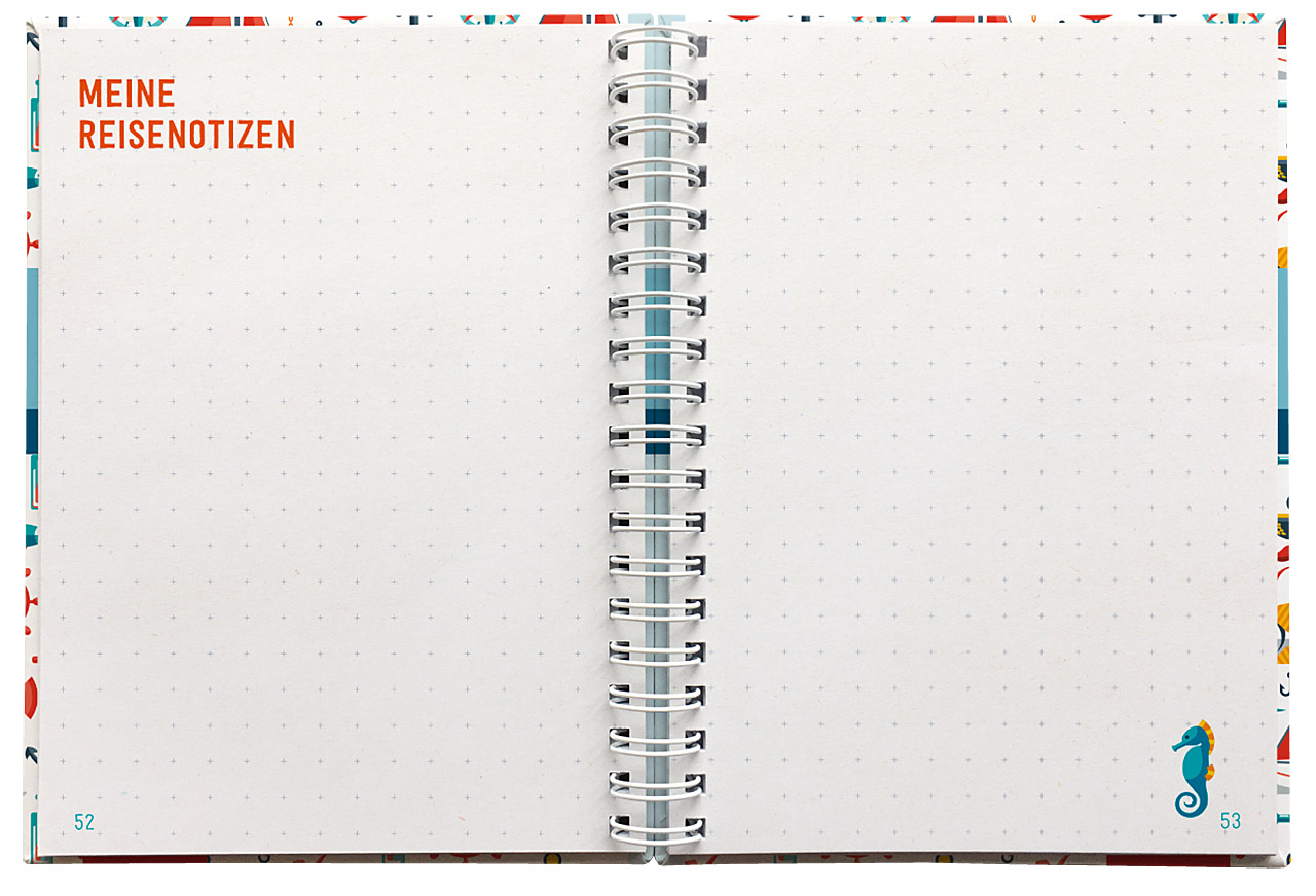 - Sonderseiten mit Platz für Reisevorbereitungen wie praktische Check- und Packlisten sowie Platz für Kontakte und Notizen