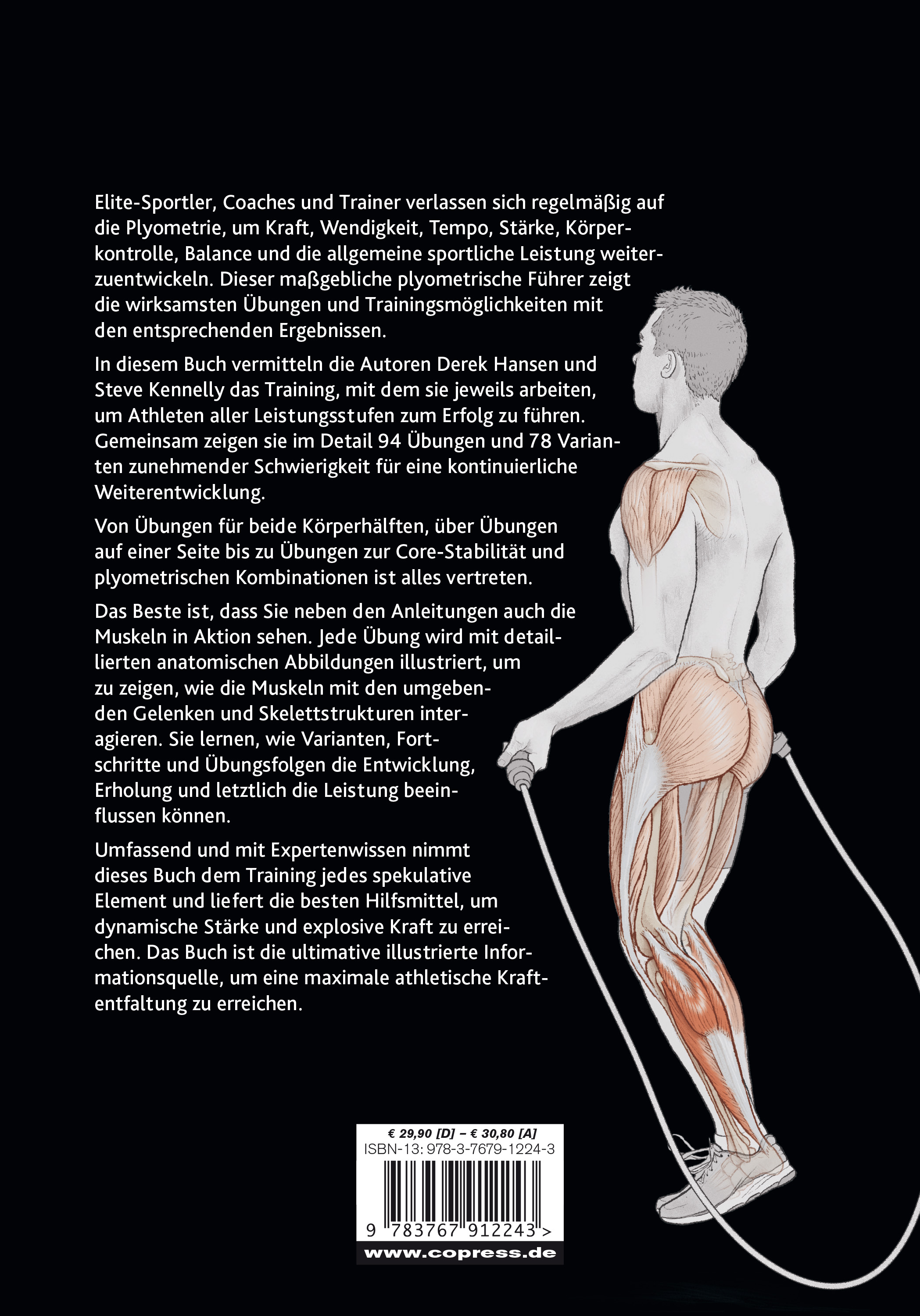 Elite-Sportler, Coaches und Trainer verlassen sich regelmäßig auf die Plyometrie, um Kraft, Wendigkeit, Tempo, Stärke, Körperkontrolle, Balance und die allgemeine sportliche Leistung weiterzuentwickeln. Dieser maßgebliche plyometrische Führer zeigt die wirksamsten Übungen und Trainingsmöglichkeiten mit den entsprechenden Ergebnissen. In »Plyometrie Anatomie« vermitteln die Autoren Derek Hansen und Steve Kennelly das Training, mit dem sie jeweils arbeiten, um Athletenaller Leistungsstufen zum Erfolg zu führen. Gemeinsam zeigen sie im Detail 94 Übungen und 78 Varianten zunehmender Schwierigkeit für eine kontinuierliche Weiterentwicklung. Von Übungen für beide Körperhälften, über Übungen auf einer Seite bis zu Übungen zur Core-Stabilität und plyometrischen Kombinationen ist alles vertreten. Das Beste ist, dass Sie neben den Anleitungen auch die Muskeln in Aktion sehen. Jede Übung wird mit detaillierten anatomischen Abbildungen illustriert, um zu zeigen, wie die Muskeln mit den umgebenden Gelenken und Skelettstrukturen interagieren. Sie lernen, wieVarianten, Fortschritte und Übungsfolgen die Entwicklung, Erholung und letztlich die Leistung beeinflussen können.