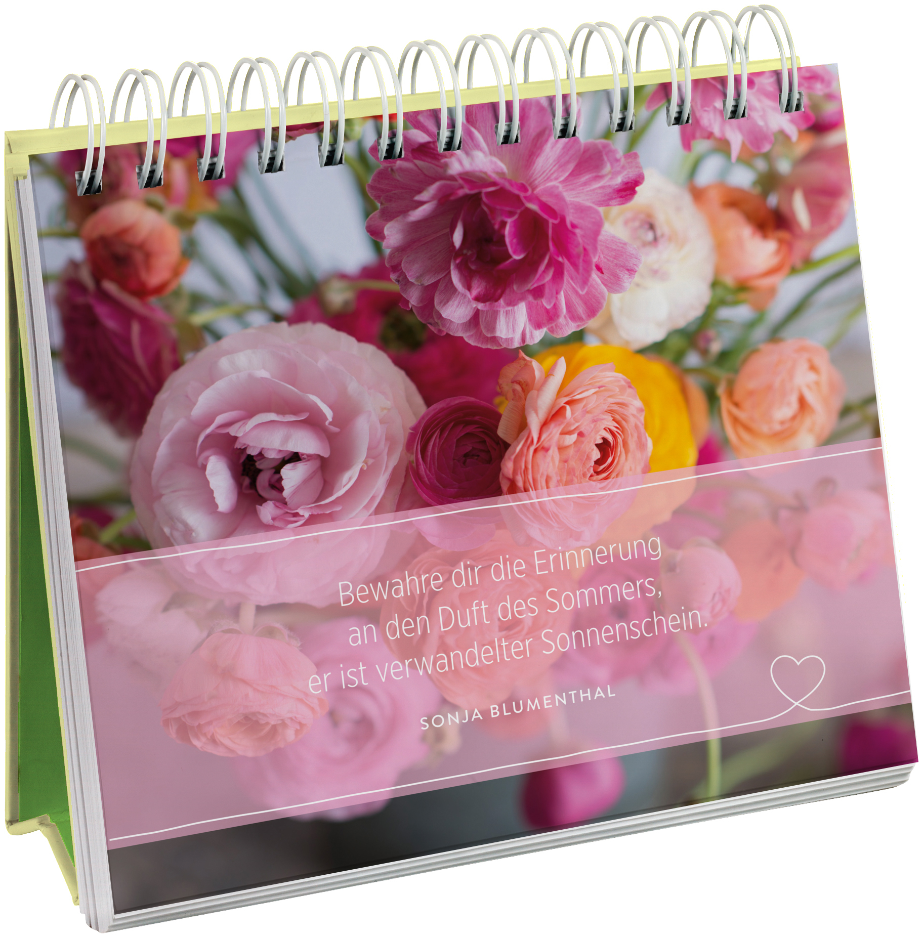 Dieser Spiralaufsteller ist das perfekte Geschenk für Freunde und Liebhaber von Blumen. Wünsche für jede Lebenssituation kombiniert mit stimmungsvollen Zitaten, Fotos, sowie kleinen Blumenzeichnungen und Ornamenten, machen diese Aufmerksamkeit zu etwas Besonderem.