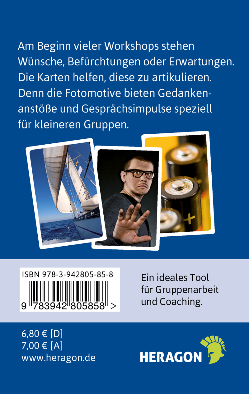 Am Beginn vieler Workshops stehen Wünsche, Befürchtungen oder Erwartungen. Die Karten helfen, diese zu artikulieren. Denn die Fotomotive bieten Gedankenanstöße und Gesprächsimpulse speziell für kleineren Gruppen. Ein ideales Tool für Gruppenarbeit und Coaching.