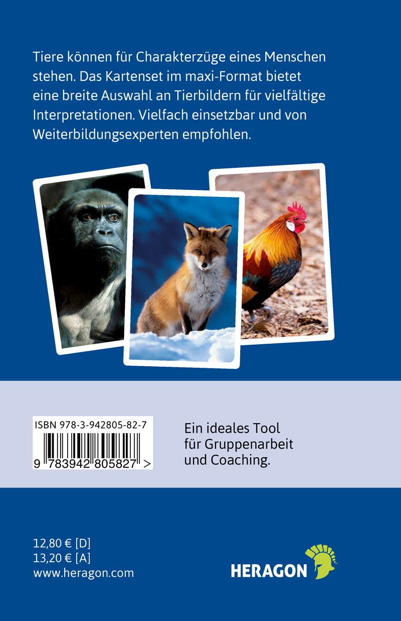 Tiere können für Charakterzüge eines Menschen stehen. Das Kartenset im maxi-Format bietet eine breite Auswahl an Tierbildern für vielfältige Interpretationen. Vielfach einsetzbar und von Weiterbildungsexperten empfohlen. Ein ideales Tool für Gruppenarbeit und Coaching.