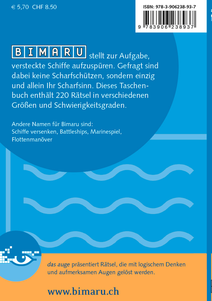 Wer Schiffe Versenken kennt und liebt - aber gerade keinen Partner zur Hand hat -, hat an BIMARU seinen Spass. In diesem Rätsel spüren Sie versteckte Schiffe auf, denn wo sie sind, lässt sich mit etwas Scharfsinn und Beobachtungsgabe herausfinden. Ein unterhaltsames visuelles Rätsel, das jeder schnell begreift. BIMARU hat vor allem in der Schweiz einen wahren Siegeszug hinter sich: Verschiedene Tageszeitungen publizieren Bimaru neben Sudoku - und BIMARU setzt sich durch. In Frankreich ist es bekannt als Bataille Navale und in englischsprachigen Ländern als Battleships.