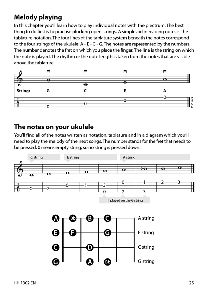 In the learning videos the songs and exercises are explained and shown in detail. The melody is available in two versions - with ukulele as learning video and as playback to play along with.