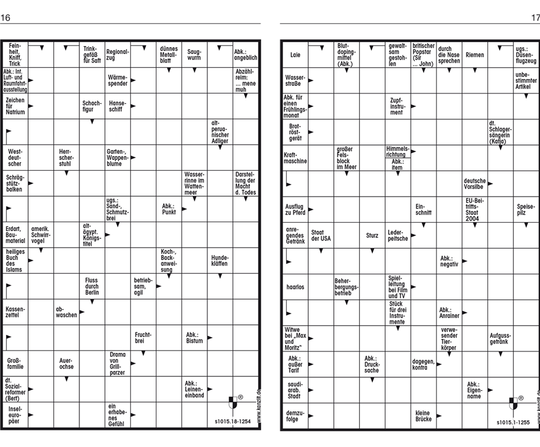 Zahl einfügen neue Kreuzworträtsel lassen keine Zeit für Langeweile. Wer sie löst schult Geist und Verstand, bestätigt und ergänzt auf unterhaltsame Weise Wissen und Kombinationsvermögen. Ob allein oder in Gesellschaft, ob daheim oder unterwegs - Rätselfreunde werden begeistert sein.