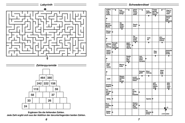 | Schlagworte | Fehlersuche • Gitterrätsel • Großschrift • Kakuro • Knobeln • Kombirätsel • Kreuzworträtsel • Kreuzworträtselbuch • Kreuzworträtselheft • lösen • Magische Quadrate • Puzzle • Rätsel • Rätselbuch • Rätselheft • Rätselmix • Rätseln • Schüttelrätsel • Schwedenrätsel • Wabenrätsel • Wörterversteck • Zahlensuche |