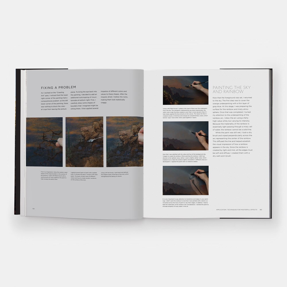 He provides detailed step-by-step breakdowns of the creation of four of his own paintings, focusing not only on application but also on the ideas that underpin every decision a landscape painter must make.