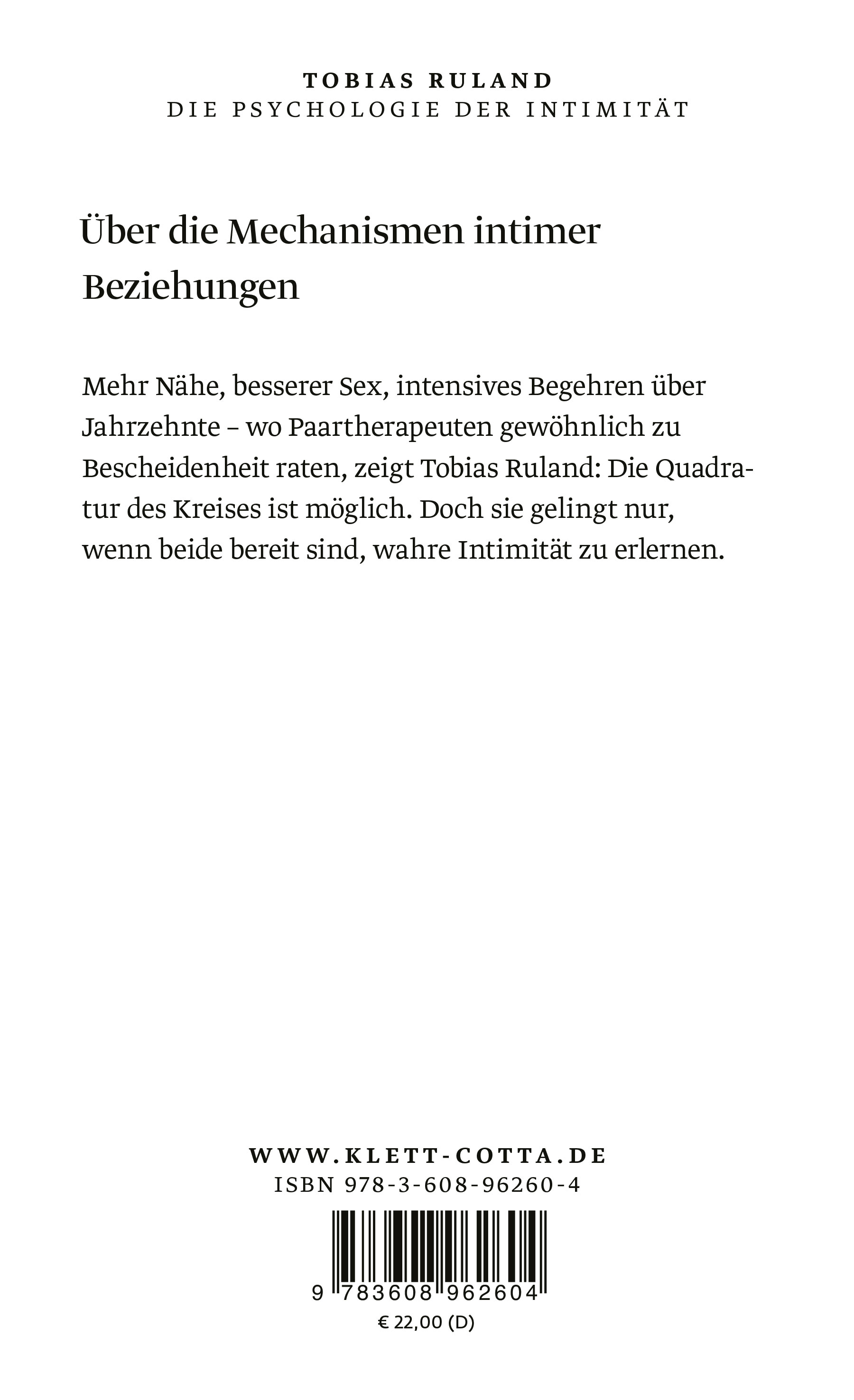 Mehr Nähe, besserer Sex, intensives Begehren über Jahrzehnte - wo Paartherapeuten gewöhnlich zu Bescheidenheit raten, zeigt Tobias Ruland: Die Quadratur des Kreises ist möglich. Doch sie gelingt nur, wenn beide bereit sind, wahre Intimität zu erlernen.