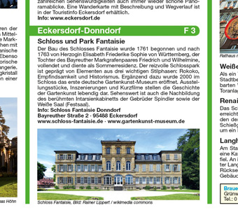 Ein gut ausgebautes Rad- und Wanderwegenetz verbindet entlang des Roten Main Kulmbach und Bayreuth, führt durch die Naturparks Fränkische Schweiz, Frankenwald und Fichtelgebirge. Gute Kondition für Radler und Wanderer ist hier, besonders im Fichtelgebirge mit seinen steilen Felsformationen, gefragt, die Infotexte auf der Kartenrückseite versprechen tolle Ausblicke. Ebenfalls auf der Rückseite der Rad- und Wanderkarte zu finden: Wissenswertes zu Orten der Region.