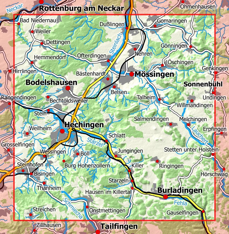 | Schlagworte | 1 : 25 000 • 1:25000 • 25000 • Bisingen • Bodelshausen • Burg Hohenzollern • Burladingen • Fahrrad • Freizeit • Gomaringen • Hechingen • Hohenzollern • Landkarte • Moessingen • Mössingen • Natur • radfahren • Radwanderkarte • Radwandern • Radwege • Sonnenbühl • Topografie • Topografisch • Topographie • Topographisch • Topographische Karte • Wanderkarte • Wandern • Wanderwege |