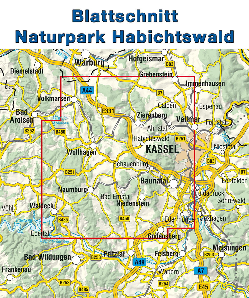 Die neue reiß- und wetterfeste Ausgabe der beliebten Rad- und Wanderkarte Naturpark Habichtswald stellt den Naturpark mit dem aktualisierten Rad- und Wanderwegenetz übersichtlich vor. Neben dem Habichtswaldsteig mit seinen Extratouren werden auch die Eco-Pfade und die vielfältigen Radwege dargestellt. Eine Detailkarte vom Bergpark Wilhelmshöhe und vom Dörnberg runden das Angebot ab