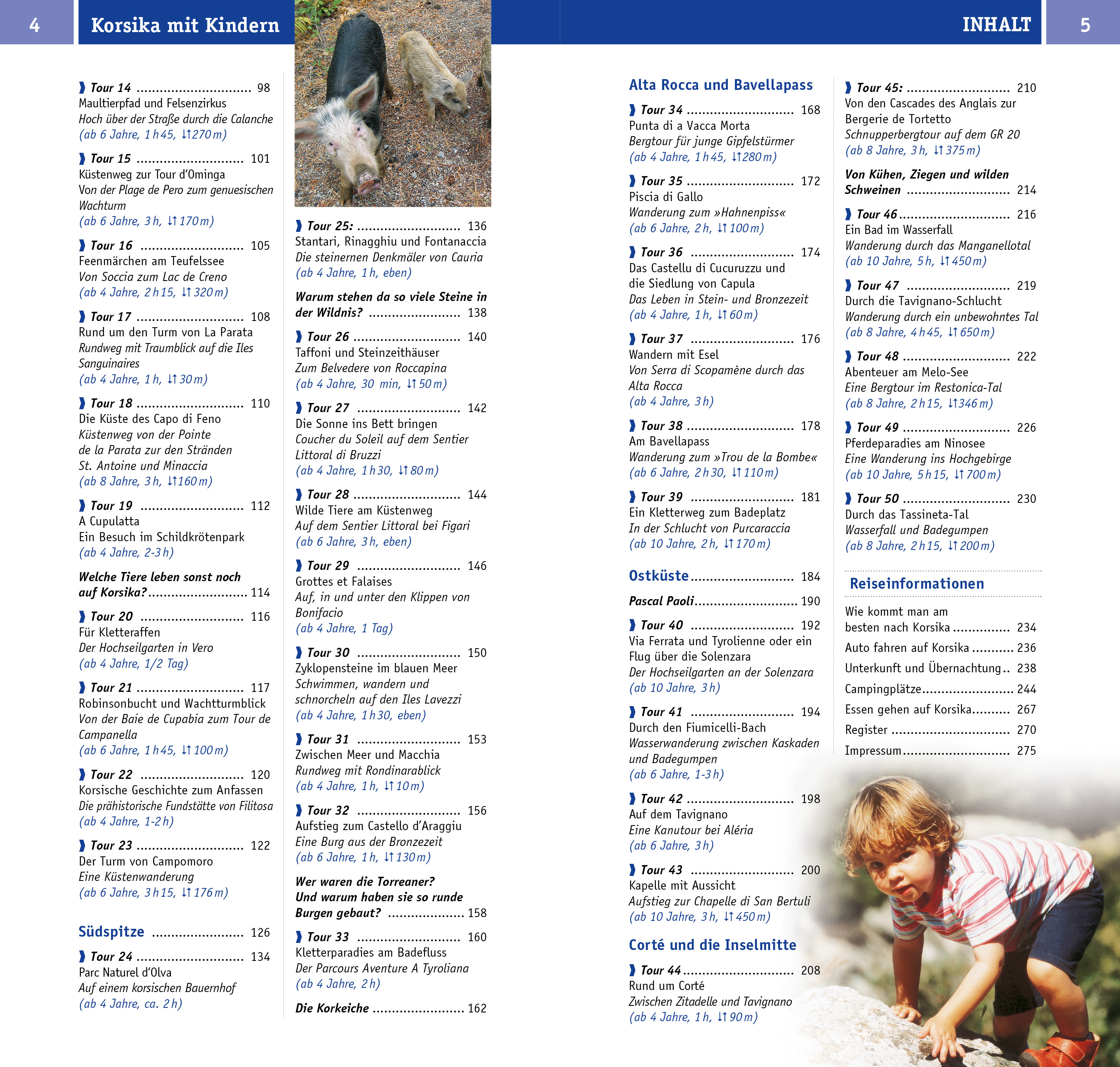 Korsika mit Kindern - Wasserfälle, einsame Flußtäler, wild-romantische Berge, malerische Dörfer, weiße Strände mit feinem Sand und türkisblauem Wasser. Korsika hat alles. Nur wenige Kilometer vom schönsten Strand entfernt, kann man in unberührter Natur wandern. Ein optimaler Urlaubsort für Familien.Das Buch enthält 50 Tourenvorschläge für Familien: vom Besuch im Schildkrötenpark oder im Hochseilgarten über einfache kurze Küstenwanderungen bis zur richtigen kleinen Bergtour. Auch ein Ausflug mit dem Kanu und eine Wanderung mit Esel sind dabei. Alle Touren sind sorgfältig beschrieben und mit detaillierter Karte, Höhenprofil und vielen stimmungsvollen Fotos ergänzt.Zusätzliche Informationen über Natur, Geschichte und Kultur der Insel helfen Eltern, Kinderfragen zu beantworten oder interessante Geschichten zu erzählen. Das Buch enthält neben den Wanderungen auch die schönsten Strände und viele weitere Ausflugsziele für Familien, sowie einen detaillierten Campingführer und viele praktische Reisetipps.