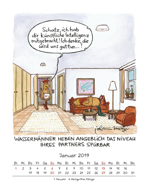Sternzeichenkalender-Cartoonkalender als Wandkalender im Format 19 x 24 cm.