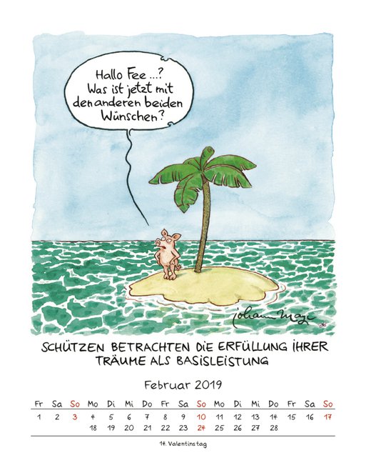 Der erfolgreiche Sternzeichenkalender mit charmanten und witzigen Cartoons für jeden Monat von Johann Mayr.
