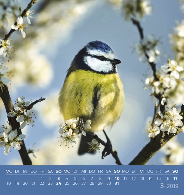 Aufstellbarer Postkartenkalender mit den schönsten Vertretern unserer heimischen Singvögel.