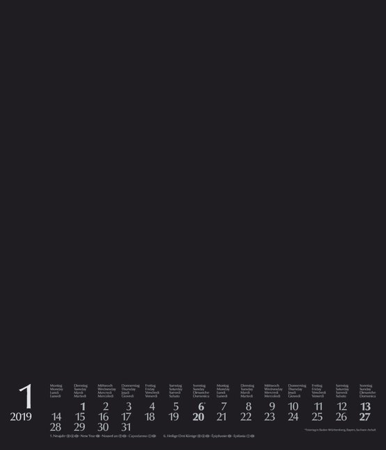 Hochwertiger Kalender mit schwarzem Karton zum Selbstgestalten mit Fotos, Zeichnungen oder Collagen. Ihrer Fantasie sind keine Grenzen gesetzt. Für Fotos im Querformat bis 24 x 18 cm und im Hochformat bis 18 x 24 cm.