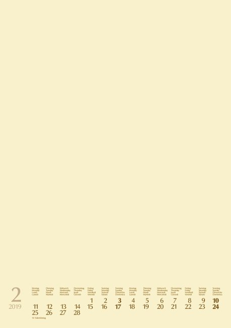 Hochwertiger Kalender mit chamoisfarbenem Karton zum Selbstgestalten mit Fotos, Zeichnungen oder Collagen. Ihrer Fantasie sind keine Grenzen gesetzt. Für Fotos im Querformat bis 20 x 15 cm und im Hochformat bis 13 x 18 cm.
