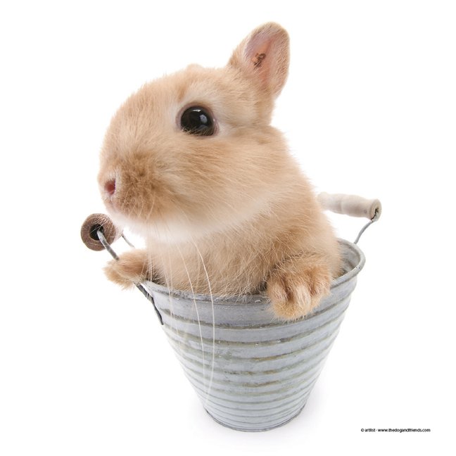 Niedliche Kaninchen wurden hier mit einer speziellen Fototechnik, der sogenannten Fisheye-Methode, aufgenommen. Dadurch werden die Köpfe der tierischen Models optisch vergrößert und sehen unheimlich witzig und süß aus.