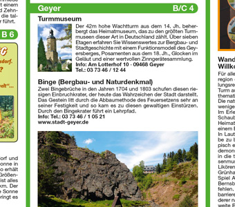 Die Wanderkarte Ferienregion Greifensteine Erzgebirge präsentiert die gleichnamige Urlaubsregion. Die Mittelgebirgslandschaft besticht durch ein gut ausgebautes Wanderwegenetz, ergänzt um Fernradwege. Die hohen Berge erfordern von Aktivurlaubern Kondition. Unbedingt zu erwähnen ist das ebenfalls gut ausgebaute Skiwanderwegenetz in der Region. Welche Sehenswürdigkeiten und Unterkünfte in Annaberg-Buchholz, Waschleithe, Zwönitz oder Wolkenstein auf die Besucher warten, erfährt man im Infoteil der Wanderkarte Ferienregion Greifensteine Erzgebirge.