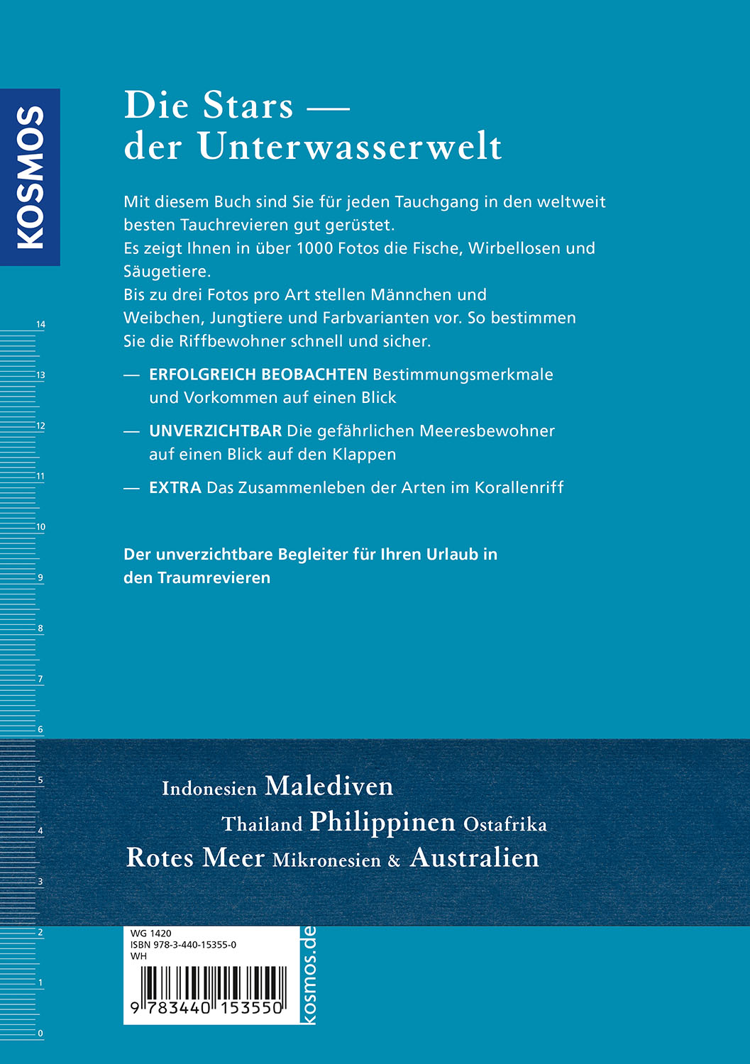 Der umfassende Riff-Führer zu den weltweit besten Tauchregionen! Im Indischen Ozean und im Westpazifik zeigen sich die Stars der Unterwasserwelt als lohnende Fotomotive im glasklaren Wasser. Gänsehaut ist garantiert, wenn sich riesige Fischschwarme abwechseln mit den großen Räubern der Weltmeere. In diesem Buch bleiben keine Fragen offen: einfaches Bestimmen und kompetente Informationen auch zu anspruchsvollen Themen wie Gefährlichkeit oder Probleme nach dem Kontakt mit einem giftigen Tier. Mit dieser unverzichtbaren Grundlage sind Taucher und Schnorchler für jede Begegnung unter Wasser bestens gerüstet. Auch für Aquarianer ist dieses Buch eine wahre Fundgrube.