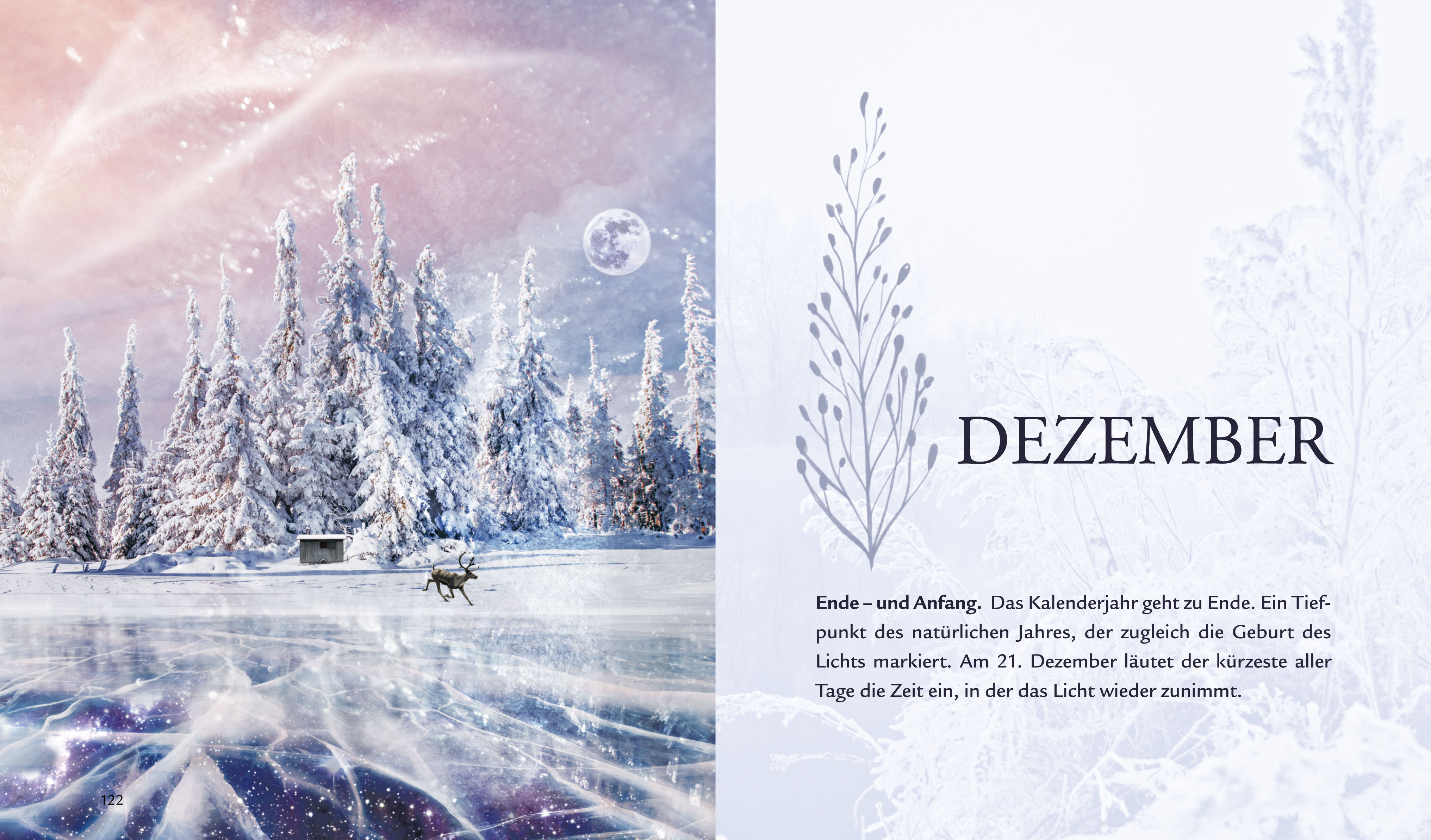 Der Rhythmus der Jahreszeiten ist eine natürliche Konstante, die uns auf der Reise zu uns selbst unterstützt. Dieser inspirierende Begleiter lädt ein zum Innehalten, Nachdenken und Reinschreiben. Unabhängig davon, wann man die Reise durch den Jahreskreis inklusive der Rauhnächte beginnt, entsteht so ein persönliches Tagebuch. Liebevoll gestaltete Collagen laden zum Meditieren ein und jeden Monat erhält man die Unterstützung einer besonderen Kraftpflanze.