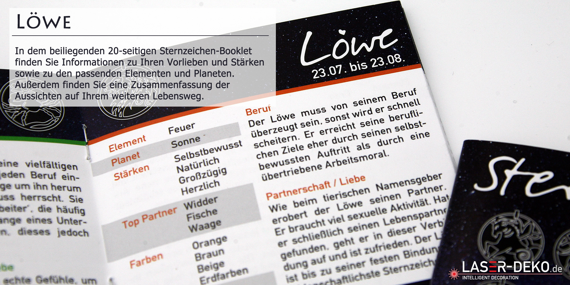 20-seitiges Booklet mit Informationen zu allen Tierkreiszeichen:
