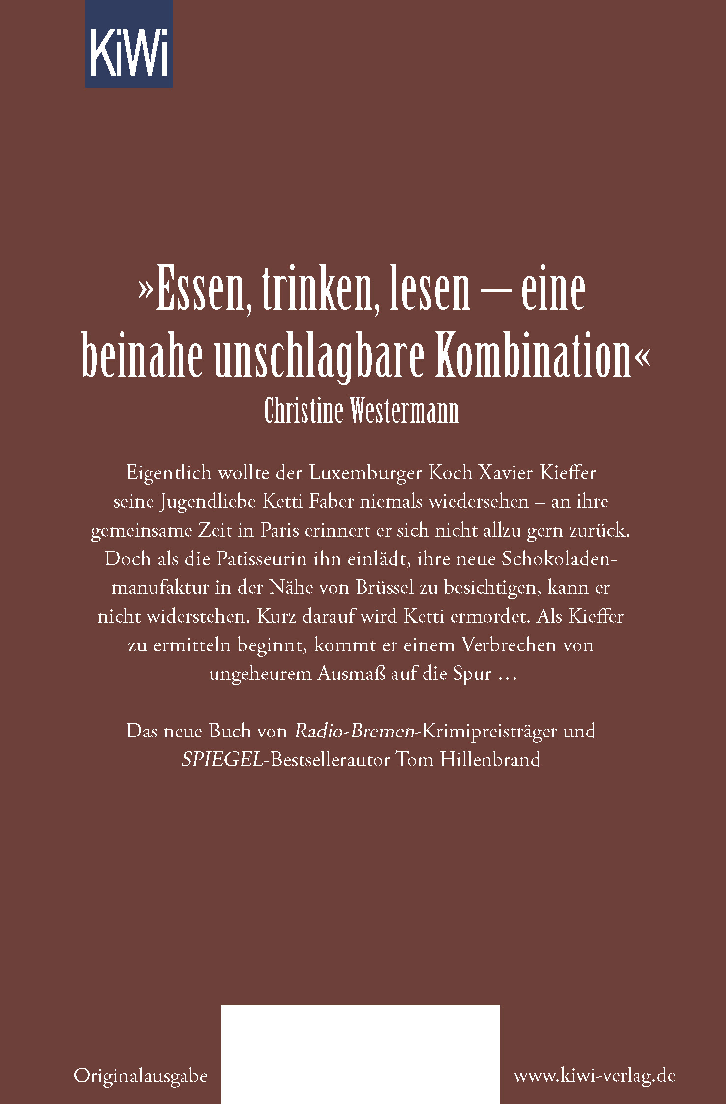 Eigentlich wollte der Luxemburger Koch Xavier Kieffer seine Jugendliebe Ketti Faber niemals wiedersehen - an ihre gemeinsame Zeit in Paris erinnert er sich nicht allzu gerne zurück. Doch als die Patisseurin ihn einlädt, ihre neue Schokoladenmanufaktur in der Nähe von Brüssel zu besichtigen, kann er nicht widerstehen.Kurz darauf wird Ketti brutal ermordet. Hat ihr Tod etwas mit jener mysteriösen Plantage in Westafrika zu tun, von der die Manufaktur ihren besonderen, fair angebauten Kakao bezog? Und was hat es mit dem Luxemburger Botschafter der Republik Kongo auf sich, der in etwa zur selben Zeit verstarb wie Ketti Faber? Kieffer beginnt zu ermitteln und kommt einem Verbrechen von ungeheuren Ausmaßen auf die Spur. Und er lernt, dass Schokolade eine sehr bittere Angelegenheit sein kann.